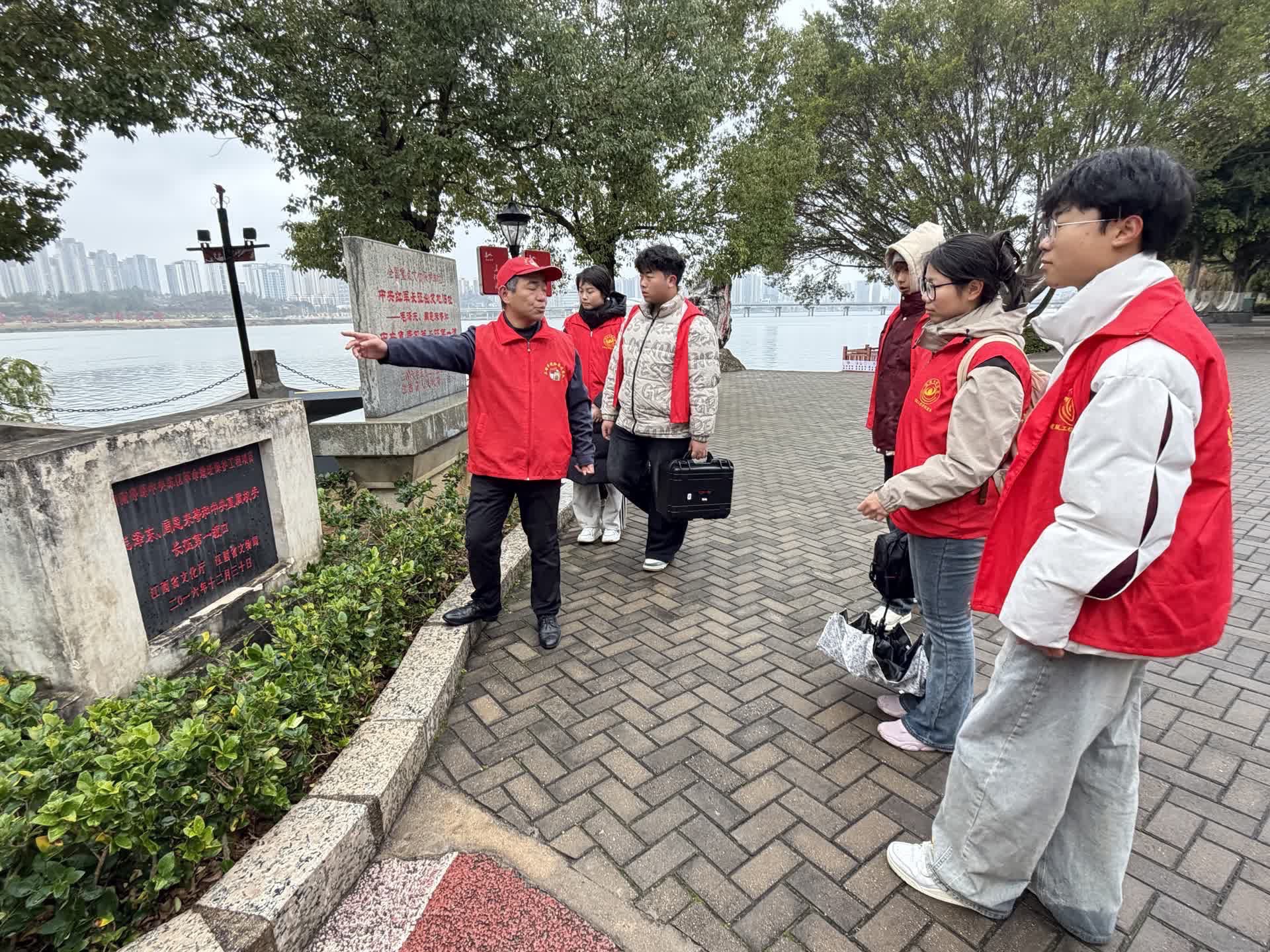 在毛泽东同志旧居何屋,队员们运用激光测距仪、无人机等设备进行精细测绘,并拍摄漫游视频,建立数字化档案。调研过程中,团队还通过访谈收集了多个红色故事,丰富了建筑的人文内涵。随后,实践队前往“长征第一渡”东门渡口及中央红军长征出发地纪念园,实地察看渡河路线遗迹,并通过文物与场景复原,深入理解红色建筑作为历史见证的重要意义。