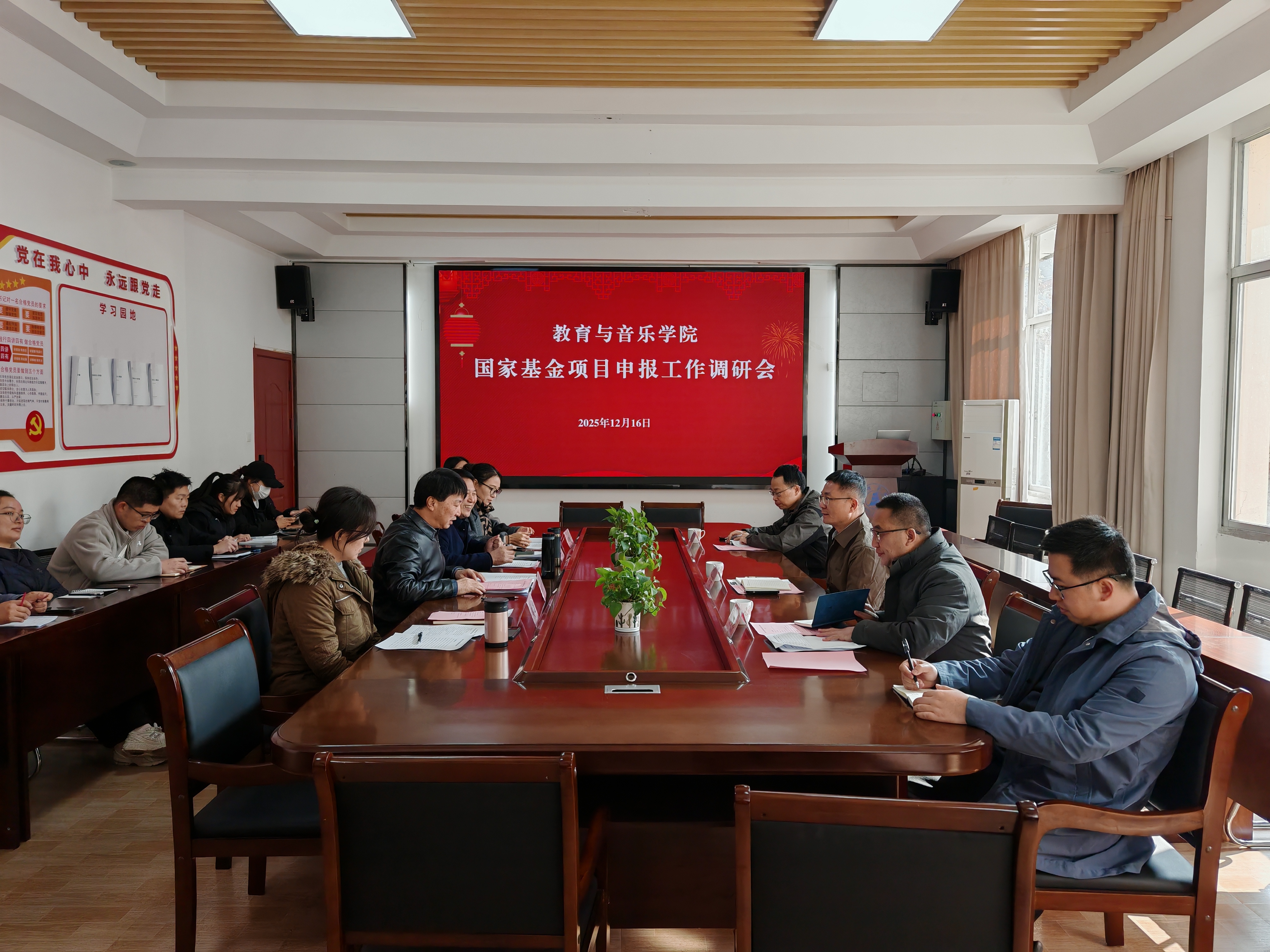 12月16日上午,陈日清副校长带领科技处(社科处)工作人员深入教育与音乐学院,就学院科研工作及国家基金项目预申报推进情况进行专题调研。学院党政领导班子成员和相关教师代表参加调研座谈。