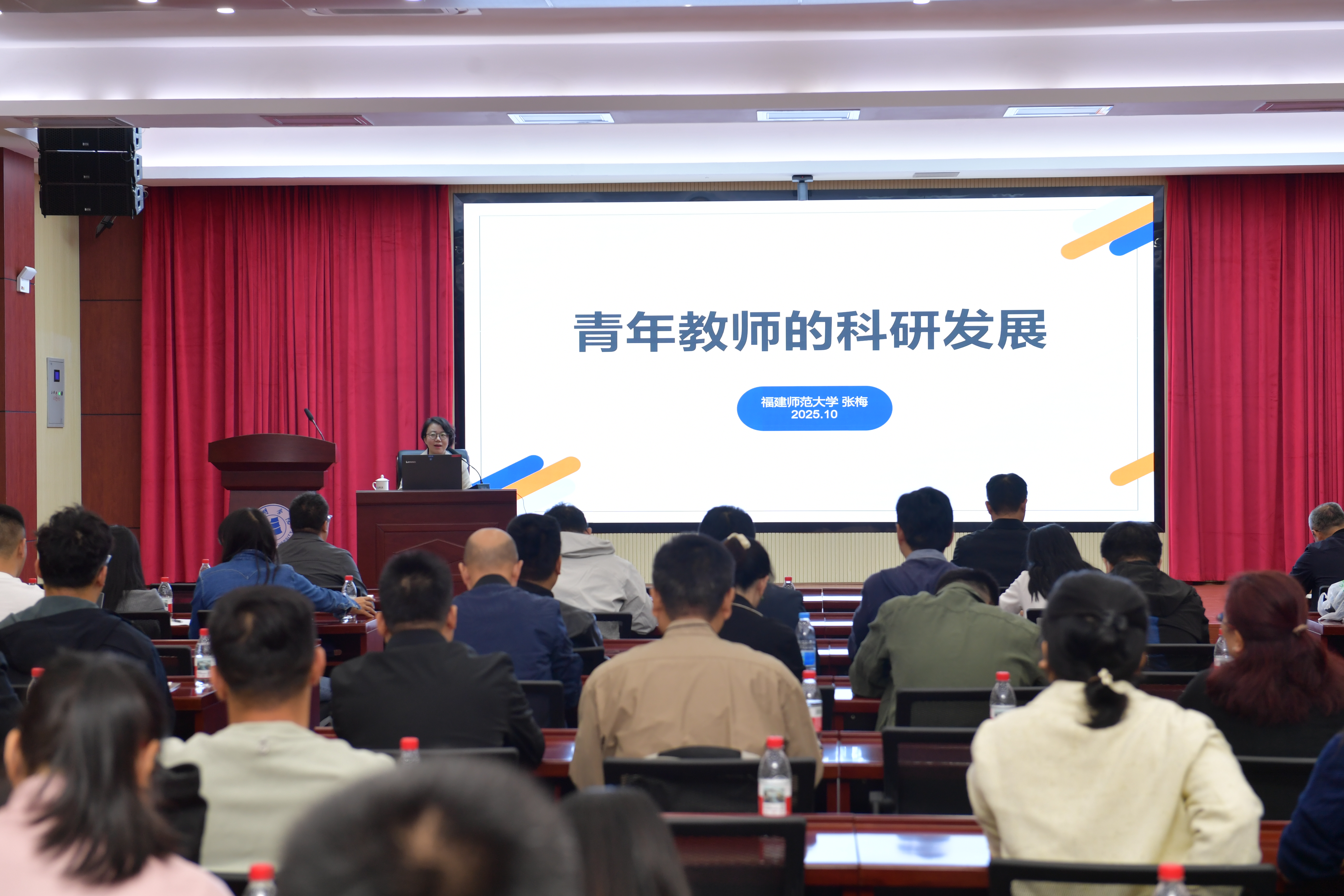 10月22日下午,我校邀请福建师范大学社会科学处处长、博士生导师张梅教授在第三会议室举办“青年教师的科研发展”专题辅导报告,为学校科研工作者带来一场关于国家社科基金项目申报的精准辅导与深度分享。报告会由陈日清副校长主持,各学院科研骨干及青年教师代表近百人参加。