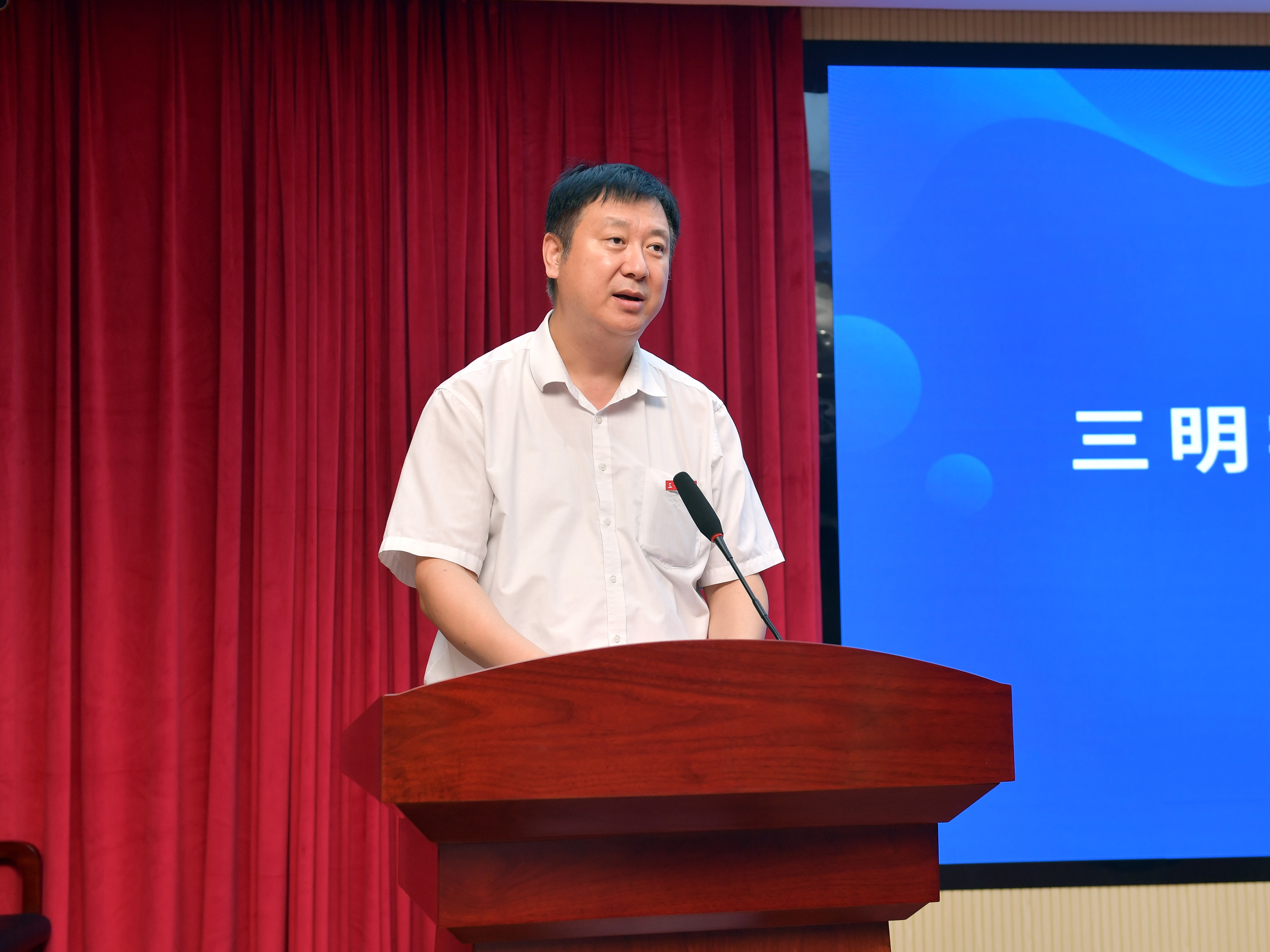 启动仪式上,吴龙副校长代表学校致辞,他强调,三明学院将以此次专项行动为新的起点,进一步深化与三元区在人才培养、科技攻关、平台共建等方面的合作,努力成为地方创新体系中的重要支撑力量。他对参与本次行动的各位专家和服务团队提出三点希望,一是坚持问题导向,深入一线摸实情。希望各位“蓝马甲”成员真正沉下去、走进去,与企业技术人员面对面交流,了解真实需求;二是强化资源整合,推动成果落地。学校将开放平台资源,支持企业开展联合研发和成果转化,推动科技创新从“实验室”走向“生产线”;三是注重长效合作,构建服务生态。要以此次行动为契机,建立校企合作长效机制,推动形成“企业出题、高校解题、市场验题”的协同创新模式。