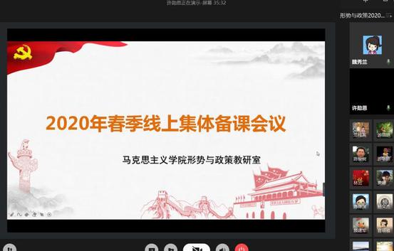 5月27日,形势与政策教研室专任教师、各二级学院党委书记就疫情形势下如何上好“形势与政策”课进行线上教学研讨。