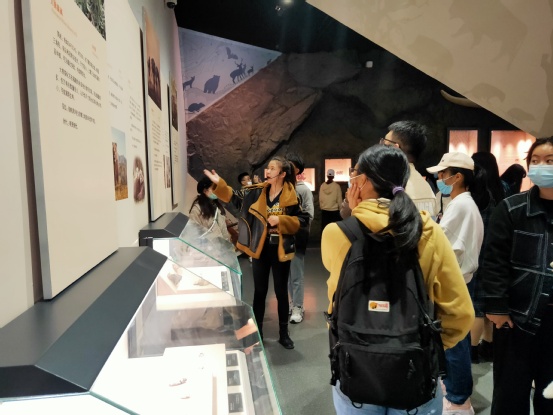 同学们首先参观了三明万寿岩遗址博物馆,在博物馆工作人员的带领下参观了“海峡两岸的远古家园——三明万寿岩旧石器时代遗址”陈列。在展厅入口处,同学们在习近平总书记对万寿岩遗址保护批示文件的展柜前驻足观看了很久,聆听对于这项批示的介绍。而后,在博物馆工作人员生动的讲解中,同学们参观了展览,了解到了万寿岩古人类遗址的考古价值和意义。万寿岩考古发掘一共出土石制品870多件,哺乳动物化石1100多件,将福建人类活动的时间提前到了18.5万年前。万寿岩遗址博物馆中场景再现、互动交流环节的参观设计也让同学们一睹远古时代先民的生存环境、生活风貌和精神境界。展览结尾处,在万寿岩遗址沙盘前,博物馆讲解员向同学们介绍了万寿岩遗址保护的过程,同学们都为岩前镇居民保护家乡生态环境的不懈努力而感动。