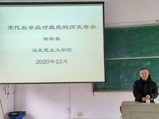 2020年12月16日下午,我院副院长靳阳春教授在鸿文楼301开设了题为“宋代社会应对瘟疫的历史考察”专题讲座,近150名学生聆听了讲座。