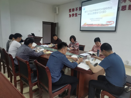4月26日上午,马克思主义学院院长助理徐桂兰教授带领读书班成员学习《习近平新时代中国特色社会主义思想学习问答》中“如何理解中国之治背后的制度密码”和“如何理解全面依法治国是国家治理的一场深刻革命”两部分内容。