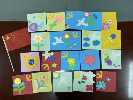 巧手匠心祝福党,多色彩泥“绘”心意。阳光下的向日葵,乘风高飞的和平鸽,映照初心的党旗……马院党员教师和教音学院学前教育学生党支部学生展开共建活动,师生们围绕“建党百年”的主题,一起合力制作彩泥作品。大家纷纷将自己的创意注入到彩泥手工制作中去,彩泥在大家的手中被不断“锤炼”,最终构成了一幅幅富有创意的图景。