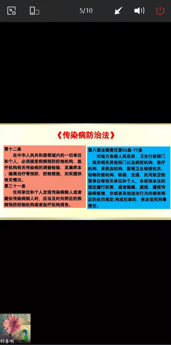 为强化教师的法律意识,刘春明老师就疫情防控涉及的相关法律法规展开“科普”,希望思政课教师们对相关的法律法规更加明晰,在牢固法律意识的基础上,积极发挥思政课的作用,做好学生的思想引导。