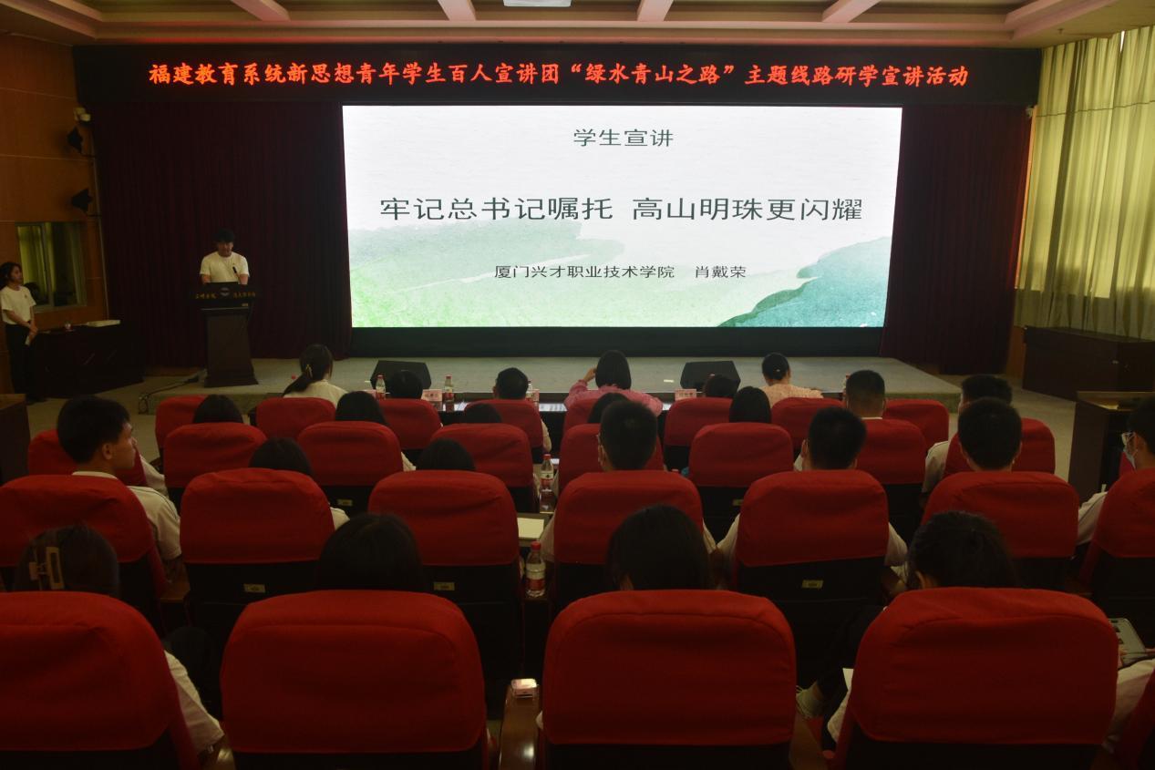 为深入开展学习贯彻习近平新时代中国特色社会主义思想主题教育,深刻领会并自觉践行习近平生态文明思想,根据省委教育工委部署,三明学院牵头举办,三明学院马克思主义学院、三明市学校思想政治理论课一体化建设协同中心共同承办,5月20日,福建教育系统新思想青年学生百人宣讲团开展“绿水青山之路”主题线路研学宣讲活动。来自三明学院、三明市大中小学师生代表近150人参加此次活动。