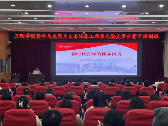 12月21日,马克思主义学院党委魏秀兰书记应邀为三明学院第九期大学生骨干培训班以及马克思主义学院、艺术与设计学院联合举行的2023年“青马工程”大学生骨干培训班作《新时代青年的使命担当》专题讲座。