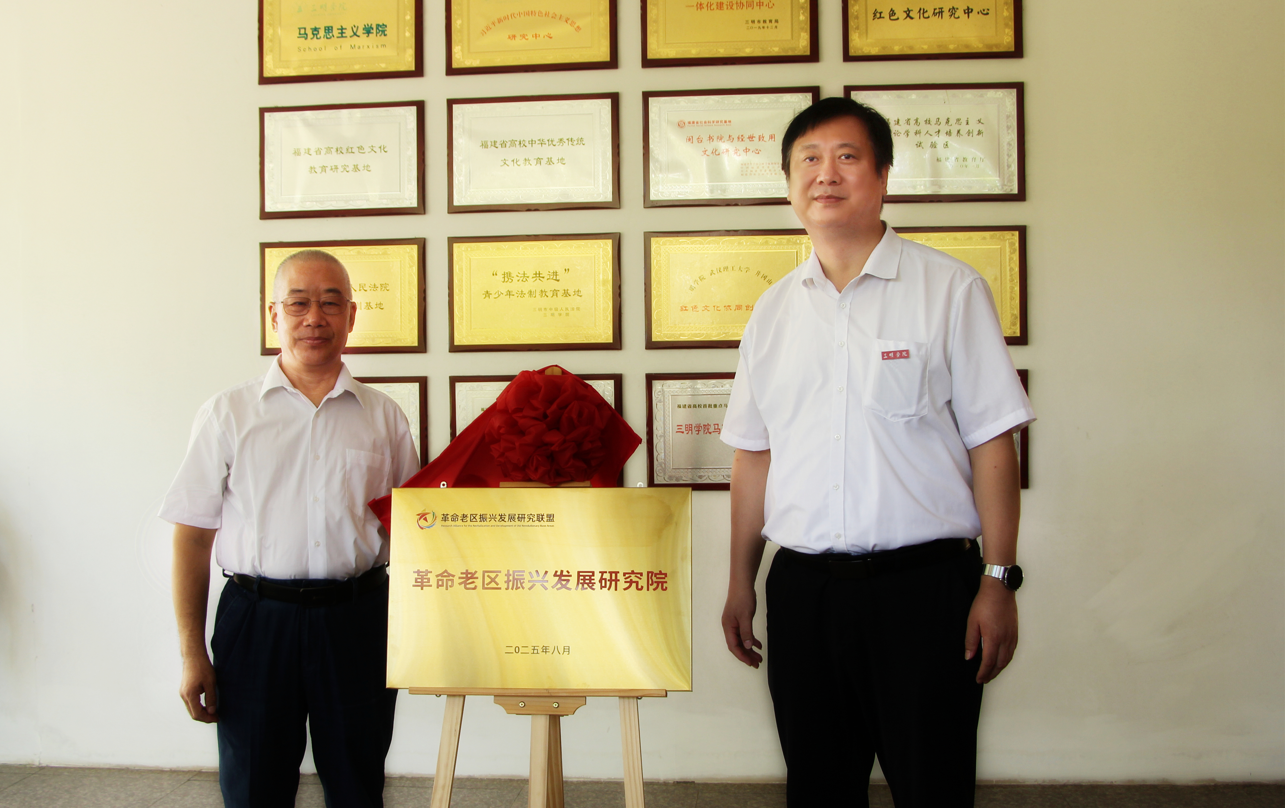 8月27日上午,三明学院革命老区振兴发展研究院揭牌仪式在明理楼(二)一楼举行。揭牌仪式由三明学院副校长陈日清主持。中国人民大学农业与农村发展学院教授、革命老区振兴发展研究院院长孔祥智与三明学院党委委员、副校长吴龙共同为研究院揭牌。