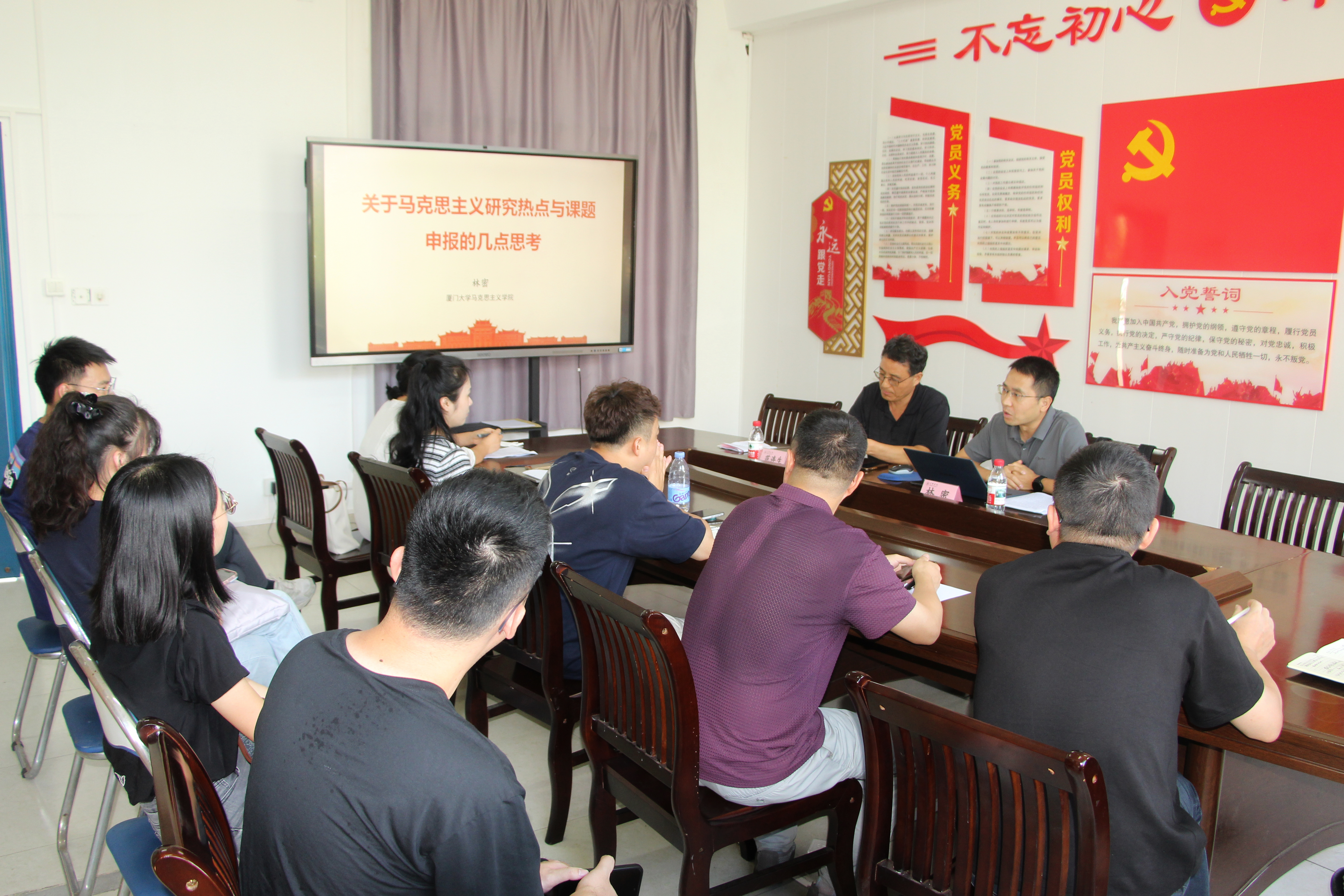 为进一步提升我院国家社科基金项目申报质量,提升教师的科研能力与学术水平,9月12日下午,厦门大学马克思主义学院副院长林密教授应邀为马克思主义学院教师作题为“关于马克思主义研究热点与课题申报的几点思考”的专题讲座。本次讲座在明德楼(二)301举行,马克思主义学院副院长欧阳秀敏教授、副院长范连生教授、博士及青年教师参加。