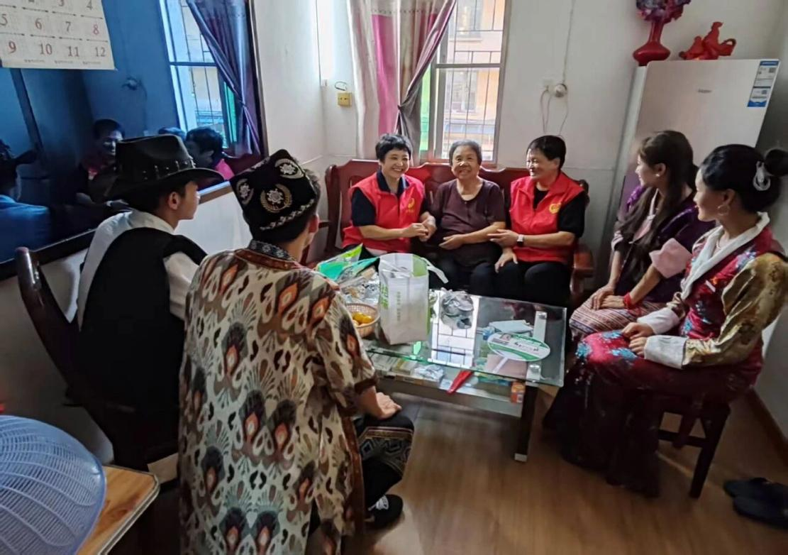 月饼制作完成后,同学们立即将月饼分装到礼盒中,一场充满温情的“送暖行动”随即展开。在社区工作人员的带领下,少数民族学生代表分组前往辖区困难群众家中,将新鲜制作的冰皮月饼与节日祝福一同送到他们手中。此次送暖行动共走访辖区困难老人、残疾家庭等20余户,每一份月饼都带着新鲜的温度,传递着“民族团结一家亲”的温暖,让困难群众在中秋佳节来临之际,切实感受到社会大家庭的关爱。