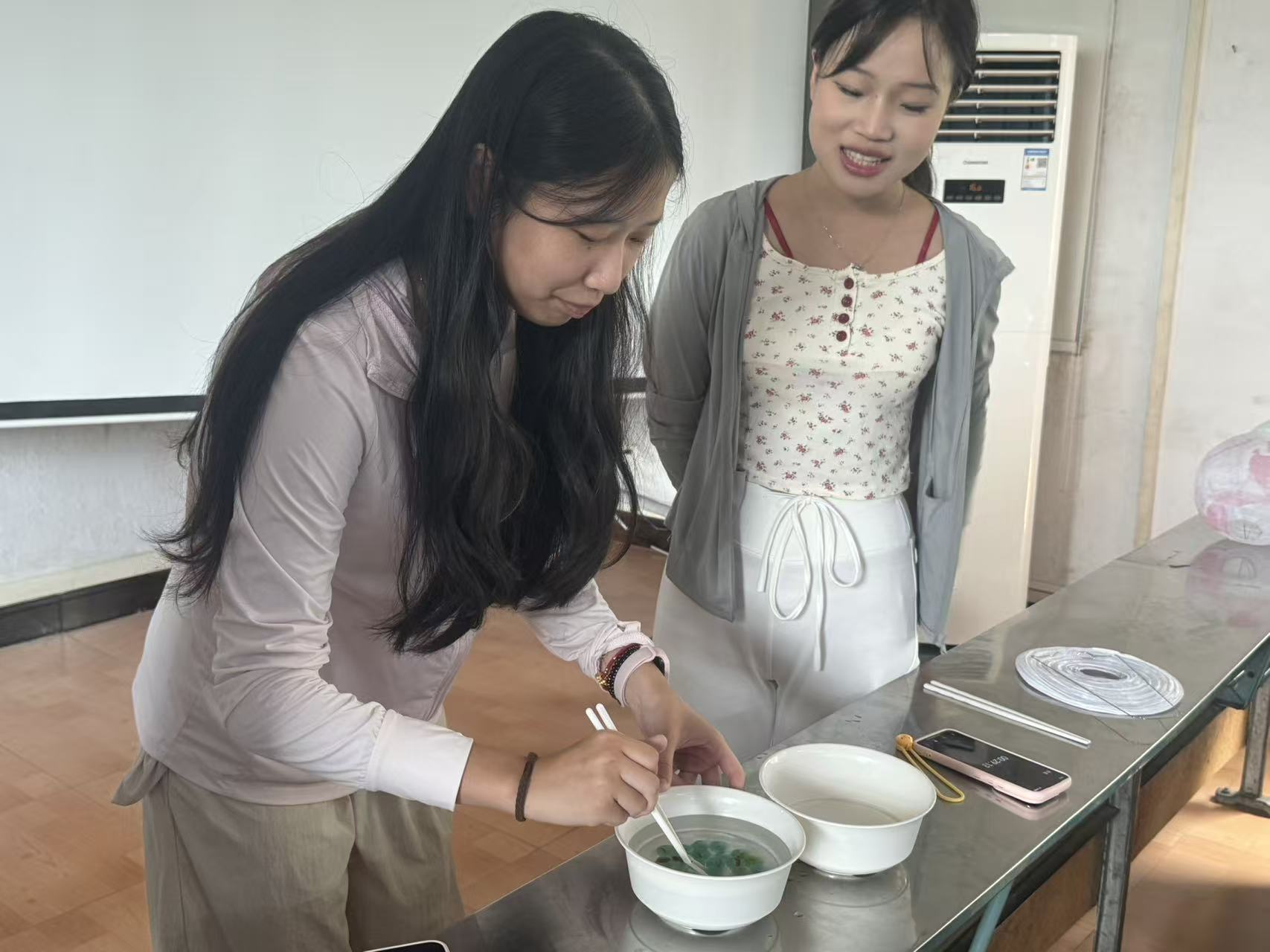 活动现场雅韵流转。“猜灯谜”区域,同学们或凝神思索,或豁然开朗,领略着汉字谜趣与古人智慧;“染灯笼”环节,大家巧手染制,一盏盏独具匠心的彩灯渐次亮起,寄托对团圆美满的祈愿;“夹弹珠”比赛紧张有趣,考验技巧与耐心,将现场气氛推向高潮。
