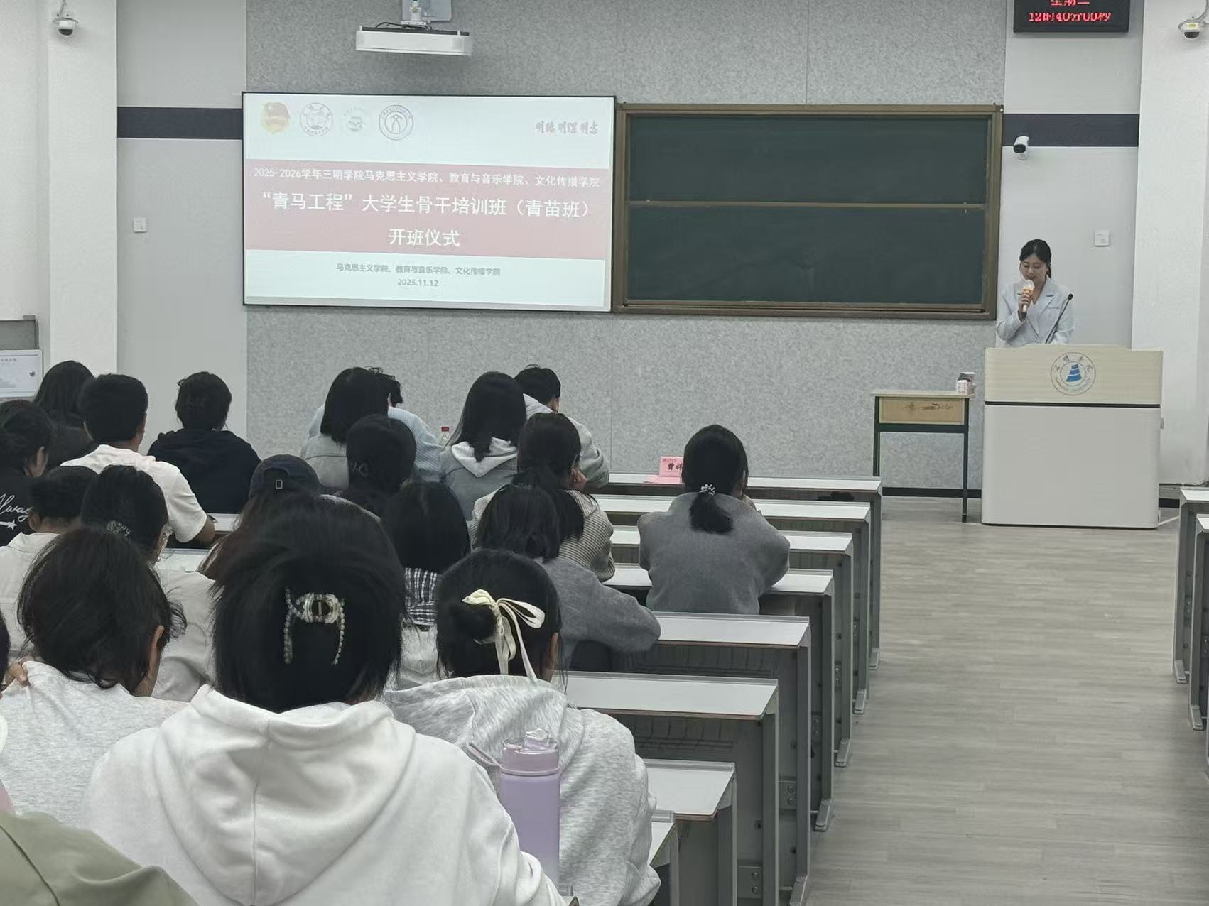 11月12日,马克思主义学院、教育与音乐学院、文化传播学院于博学楼127联合举办2025年青年马克思主义者培养工程大学生“青苗”骨干培训班开班仪式。