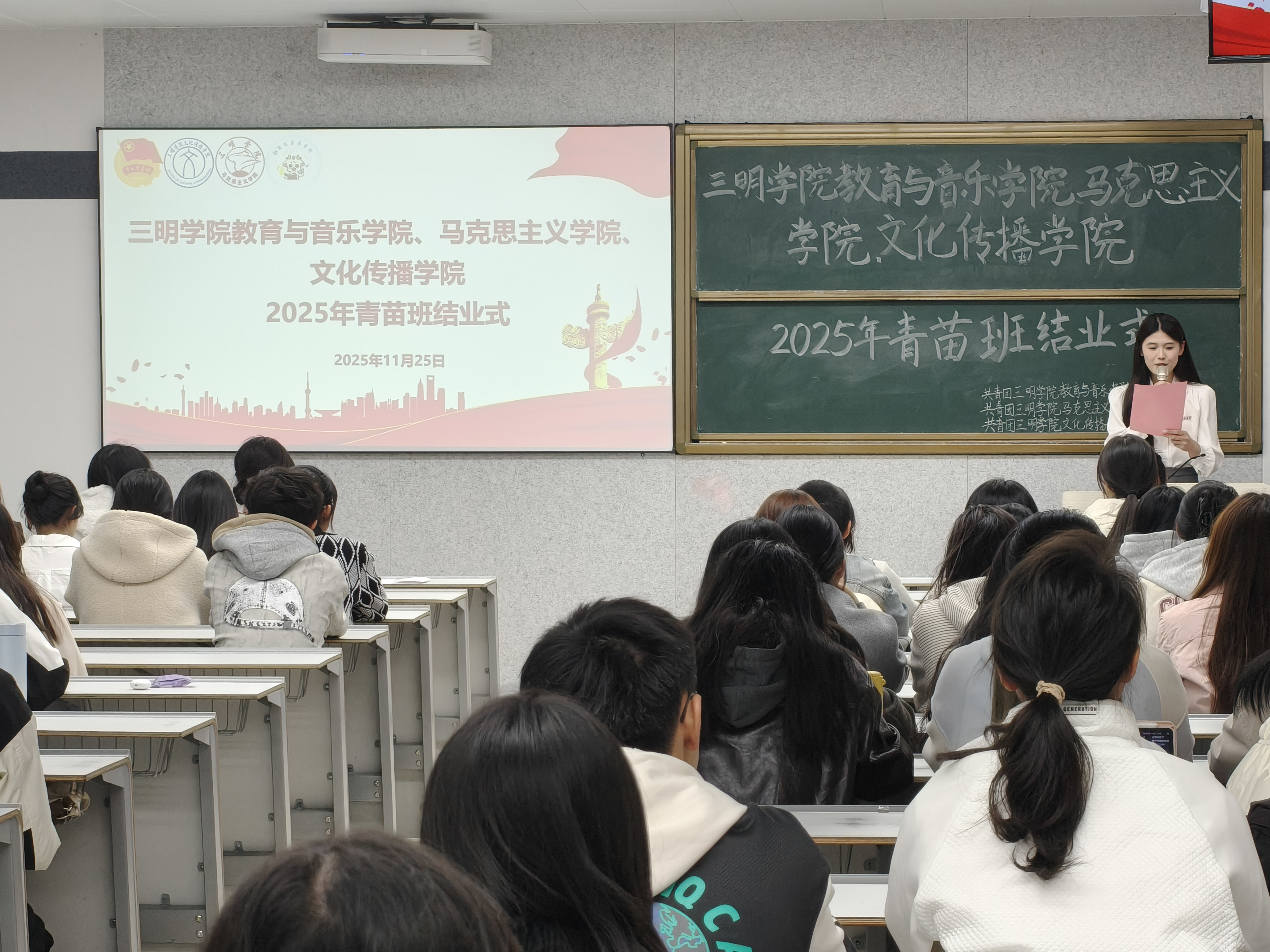 11月25日晚,三明学院马克思主义学院、教育与音乐学院、文化传播学院在博学楼201教室联合举办2025-2026学年青苗班结业式。教育与音乐学院团委副书记、马克思主义学院团委副书记及全体青苗班学员共同参加了此次活动。