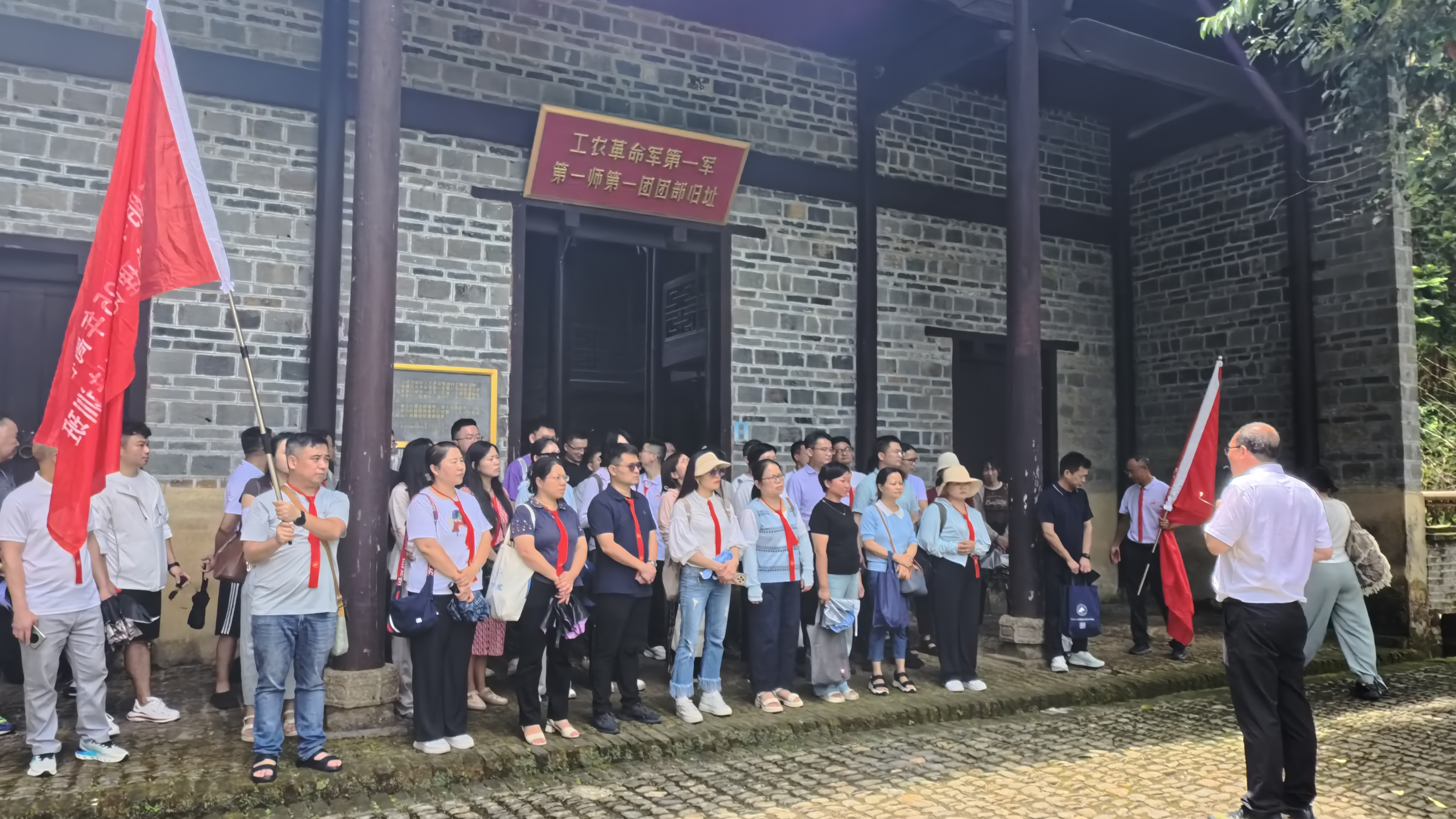 “革命军人个个要牢记,三大纪律八项注意……”激昂的红歌在教室中久久回荡,为马克思主义学院的党员集中教育培训班增添了一抹浓厚的红色氛围。在全党开展深入贯彻中央八项规定精神学习教育的重要时期,马克思主义学院于7月23日组织全体教师奔赴中国革命历史的关键转折点——三湾改编旧址群,开展了一场别开生面、意义深远的现场教学活动。此次活动旨在深刻体悟党的光荣传统与优良作风,持续巩固拓展深入贯彻中央八项规定精神学习教育成效,筑牢全体教师的思想根基,锤炼过硬作风,为学院的教育事业注入强大的精神动力。