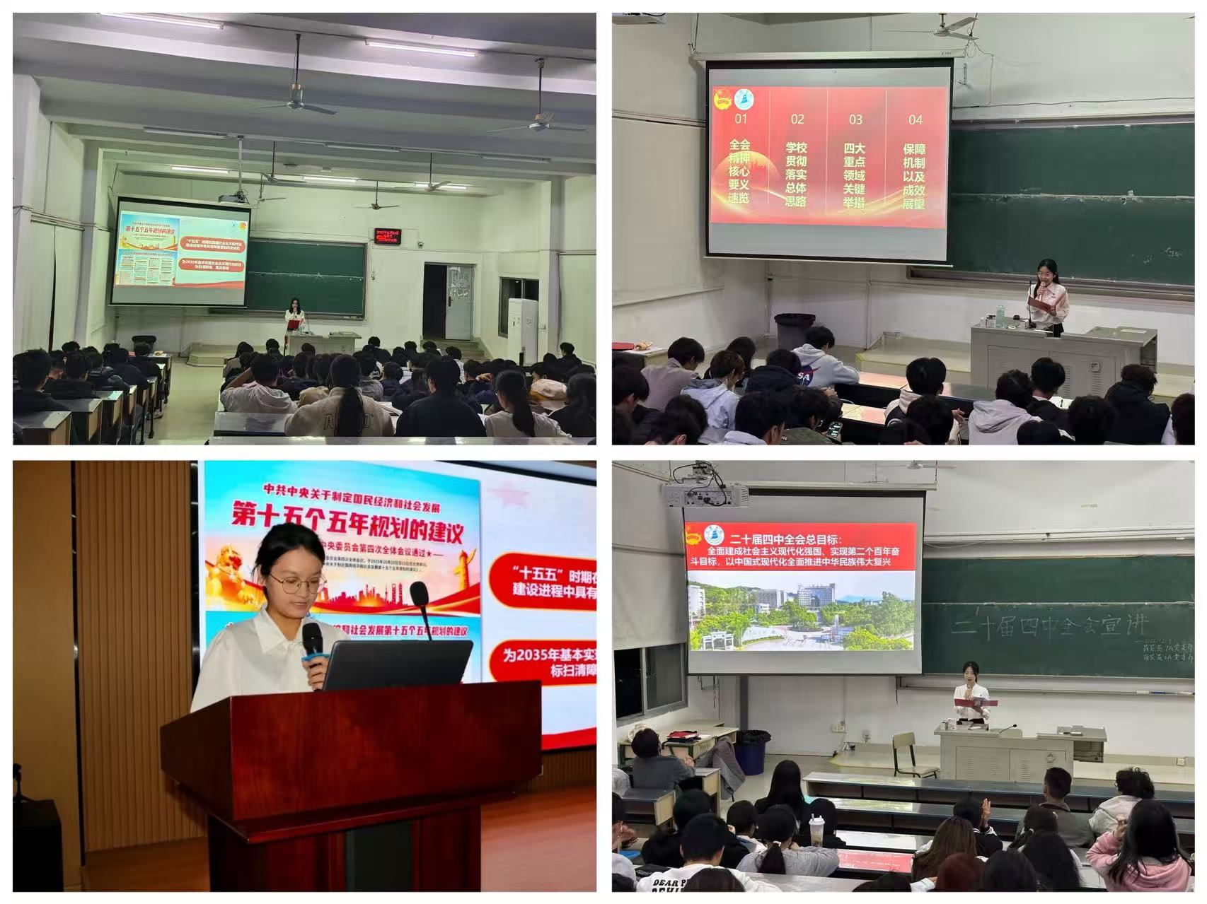 宣讲团紧扣全会精神核心,聚焦“六个坚持”重要原则,以“青言青语”搭建理论与青年的沟通桥梁。宣讲既系统解读《中共中央关于制定国民经济和社会发展第十五个五年规划的建议》的关键部署,又注重结合青年成长关切与校园生活、社会实践实例,避免抽象说教。通过将宏大政策与身边故事相结合,帮助学子深刻认识全会精神的时代意义,明晰新时代青年在中国式现代化建设中的责任使命,引导大家将学习成果转化为成长动力与行动自觉。