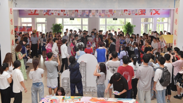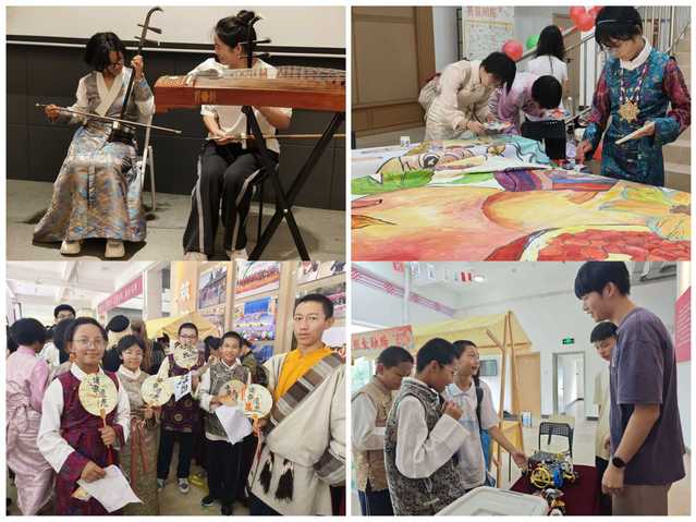 活动现场洋溢着青春与团结的气息。“丹青共绘中华情”区域,列东中学西藏班同学与三明学院学子围坐在一起,以画笔为媒,共同绘制象征紧密团结的“石榴籽”图景;“舞步共踏同心圆”环节,各族学生手拉手围成圈,随着民族音乐的节奏起舞,在欢声笑语中拉近彼此距离;“雅乐共奏团结曲”处,古筝与琵琶的经典旋律引来阵阵轻和,传统与现代在音符中交融,奏出校园中最温暖的乐章。