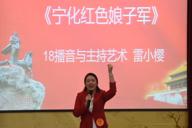 随着一股股红色热潮席卷三明市,受红色精神感染的三明学院师生共同参与其中。在23日下午19时的初赛中,21位选手各展英姿,在舞台上讲述着一个又一个关于毛泽东等老一辈无产阶级革命家在三明这块红土地上进行伟大斗争的生动故事。最终辛佳媛、苏栎荧等选手凭借出色的发挥进入复赛。在24日下午三时的复赛中,场内的气氛更为热烈,《草鞋队长》·《洗刷不掉的红军标语》、《宁化红色娘子军》、《三明革命烈士第一村》等等感人而又难以忘怀的故事引起了在场观众的共鸣,场内不由自主地响起了热烈的掌声。“誓死不当俘虏!”“可惜我太老了,不然我也要上战场杀敌!”等话语激荡在会场中久久不散。接着,文化传播学院王丽教授点评了选手们的表现,指出了演讲所需要注意的语气变化,情景配合等方面,并共同追忆了革命先烈们那热血奋斗的岁月。最终,18级播音与主持专业雷小樱同学荣获本次比赛第一名。