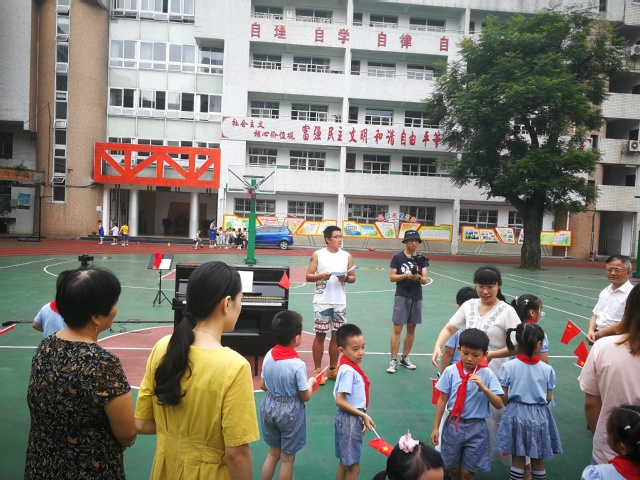 7月的太阳过于毒辣,11点的太阳令人汗如雨下,但是小朋友们并没有放弃,还是坚持拍摄。拍摄一直持续到1点,小朋友们非常配合。在拍摄过程中,小朋友们摇着国旗,合唱《我和我的祖国》气势恢宏,眼里闪耀着兴奋的光芒。