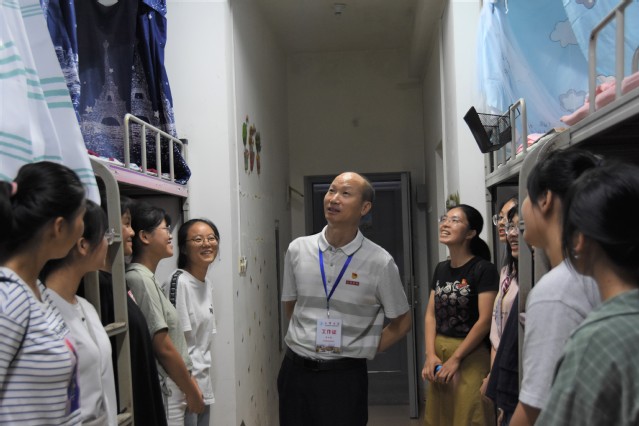 9月7日晚,三明学院文化传播学院党委书记曾令超、党委副书记游耿林、院长赖祥亮、副院长赵平喜、团委书记吴智灵、辅导员郑吉香在三位学生代表的陪同下走访了新生宿舍,与新生亲切交流,给予了新生深切的期许和关怀。
