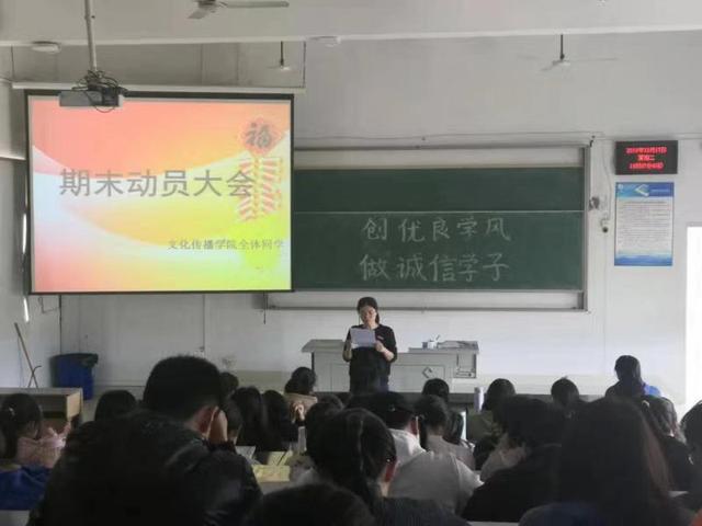 期末考试将近,为增强同学们的诚信考试意识,坚定诚信信念,明确“诚信考试”的含义,深刻理解考试作弊的后果与教训,促进班风、学风、考风向更健康的方向发展。近期,文化传播学院组织开展“创优良学风,做诚信学子”主题班会活动。