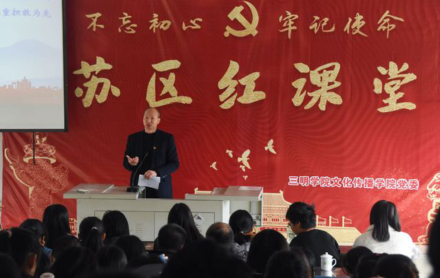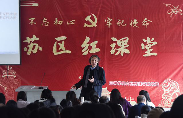 2019年12月6日,文化传播学院党建品牌“红色课堂”升级为“苏区红课堂”。为了更好地开展苏区红课堂活动,我院特邀请了井冈山大学孙斌教授、福建江夏学院郭建彪教授亲临指导,为文化传播学院师生党员、发展对象及入党积极分子开了两场讲座。