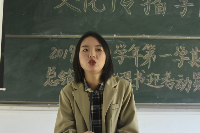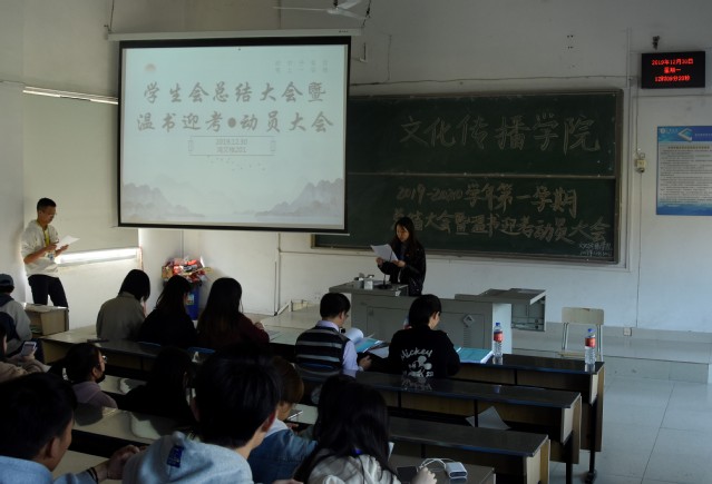 12月30日中午,文化传播学院学生会2019-2020学年第一学期总结大会暨温书迎考动员大会于鸿文楼201教室召开。院党委副书记游耿林、团委书记吴智灵、团委副书记郑吉香以及全体学生会成员参与本次大会。