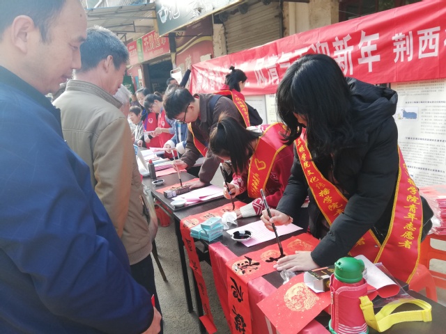 近日,文化传播学院志愿者走进荆西街道,开展了“廉政春联进社区,风清气正迎新年”活动,以义务写春联的形式让廉政文化深入荆西街道的家家户户。