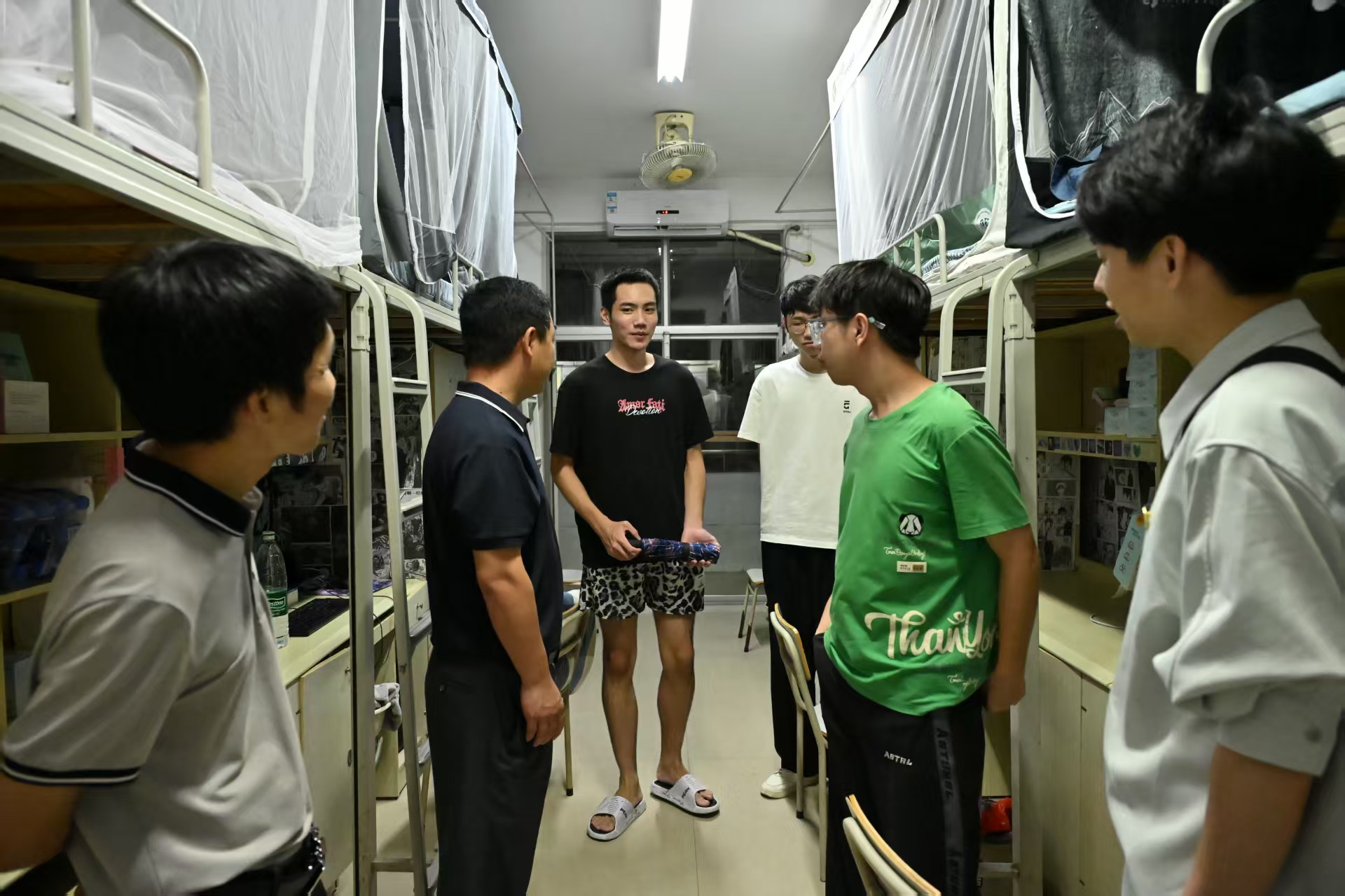 宿舍内的交流氛围轻松而热烈,新生们纷纷打开话匣子,分享报到时的趣事与对大学生活的期待。来自2025级汉语言文学专业的张恩硕说:“学院领导的关心关怀,让我一下子就感受到了学院的温暖,对大学生活的陌生感少了很多。”新生家长王先生也感慨道:“从报到时的志愿者引导,到现在领导老师亲自上门慰问,学校的安排特别周到,我们把孩子交给学院很放心。”