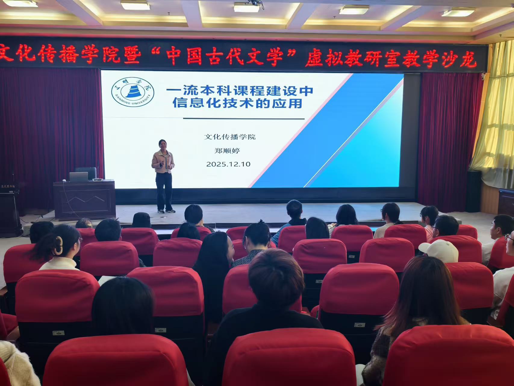 12月10日下午,一场以“一流本科课程建设中信息化技术的应用”为主题的教学沙龙在三明学院图书馆学术报告厅举行。本次活动由文化传播学院主办通过线上线下混合模式,搭建起跨校教研交流的平台。沙龙主讲人为文化传播学院专任教师郑顺婷,中文系全体教师、其他院系青年教师、“中国古代文学”虚拟教研室成员参与本次活动。