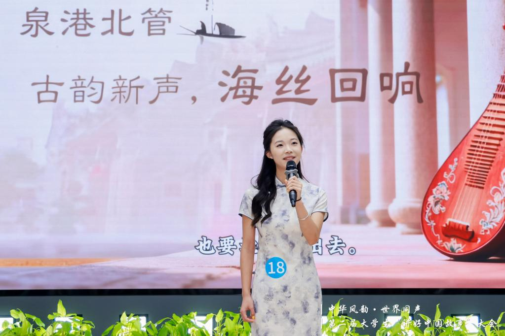本次大会自今年9月启动,共收到来自全国137所高校的1376件作品,竞争激烈。庄美玲同学的作品《古韵新声,海丝回响》以国家级非物质文化遗产——泉州泉港北管为主题,用乡音深情讲述了省级非遗传承人庄炳文数十年来坚守传承、推动北管走进校园的动人故事。她的讲述情感饱满、表达专业,不仅展现了北管艺术刚柔并济的独特魅力,也让评委与观众深切感受到方言作为“地域文化活化石”的深厚底蕴,获得了现场高度评价。
