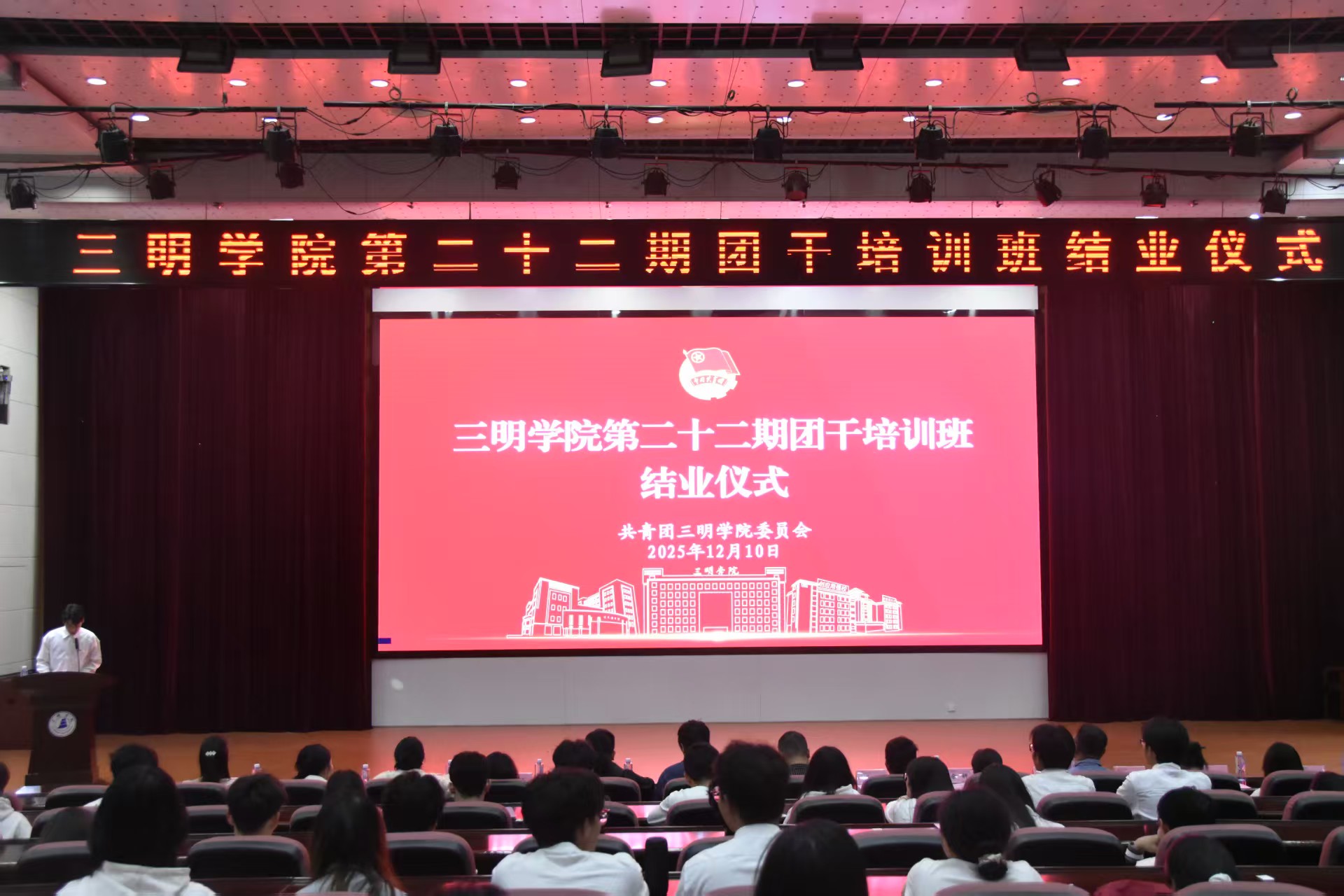 12月10日下午,三明学院第二十二期团干培训班结业仪式在行政附楼学术报告厅举行。校团委、各二级学院团委负责人及345名学员参加,为本次培训画上圆满句号。