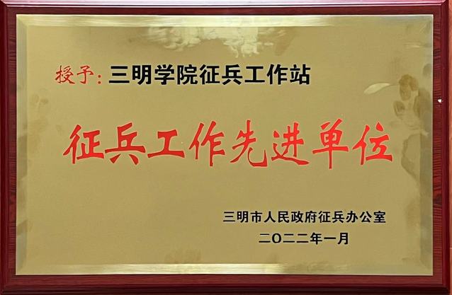 三明学院征兵工作站被评为2021年度三明市征兵工作先进单位