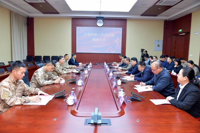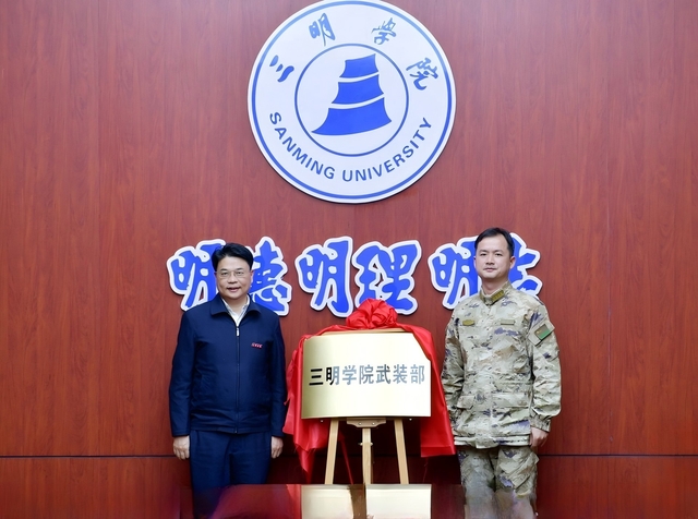 314日,三明学院人民武装部揭牌仪式在会议中心第二会议室举行。三明学院党委书记陈列平、党委副书记廖景榕、三明军分区领导陈永团三元区人民武装部政委贾峰、三元区常务副区长高再贤和学校相关单位参加揭牌仪式