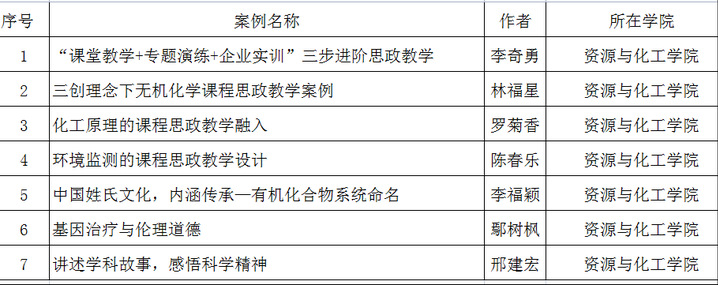 我院7项教学案例获三明学院课程思政优秀教学案例