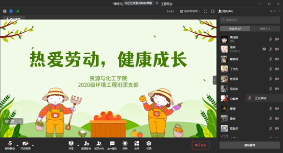 此次团支部主题教育立项活动,由2020级环境工程班、2021级材料化学班等班团支部开展“热爱劳动,健康成长”线上学习交流会以及“学习二十大,永远跟党走”主题班会等多个团支部主题教育活动。各团支部以线上及线下方式,通过党史交流、宣传讲座、劳模学习、主题团日、主题班值观,涵养劳动情怀,担当青年使命。