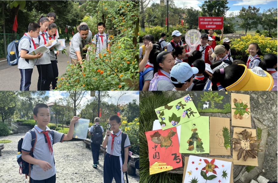 石庆会博士率领的“动物蝴蝶多样性研学”小组、韩威博士率领的“植物多样性研学”小组以及由“资小科”志愿者和环保协会会员组成的创意小组,观察并记录不同种类的蝴蝶,探究各类植物的形态与功能,巧妙利用落叶拼贴出独特的艺术作品。活动结束后,全体参与者齐心协力投入到保护环境的清扫活动中,用自己的行动践行了“生物多样性,你我共参与”的理念。