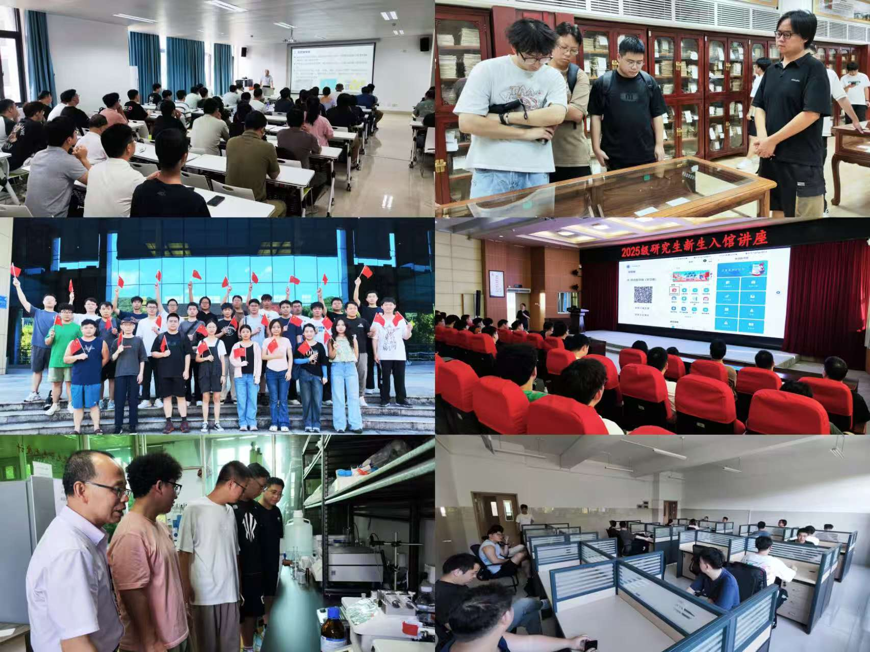 9月14日,学院组织开展了研究生安全教育专题讲座和师生见面会活动。安全教育围绕实验室安全、校园生活安全和网络安全等方面展开,增强新生的安全意识和自我保护能力。师生见面会上,导师与新生进行了深入交流,进一步明确研究方向和学习要求,营造了良好的师生互动氛围。学科带头人肖旺钏教授以“成长、责任与未来”为题开展入学教育,结合校情校史与安全教育,解读学院对接区域产业的应用型培养定位,并带领新生参观实验室等科研平台。次日,新生通过入馆讲座与校史馆、古籍室参观,系统了解学术资源与校园文化。