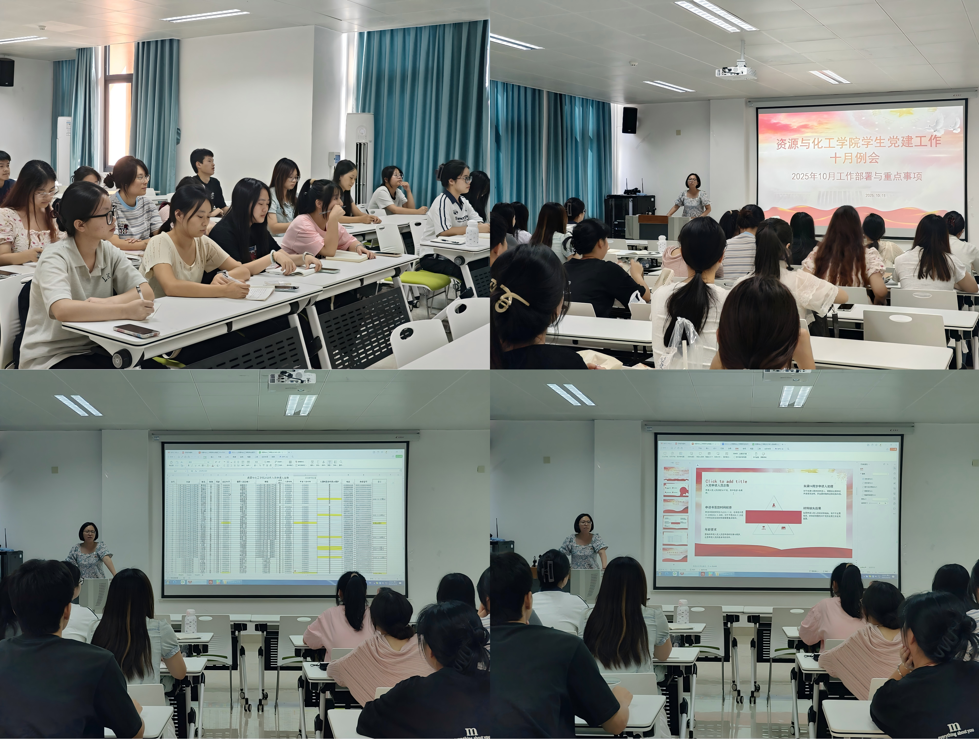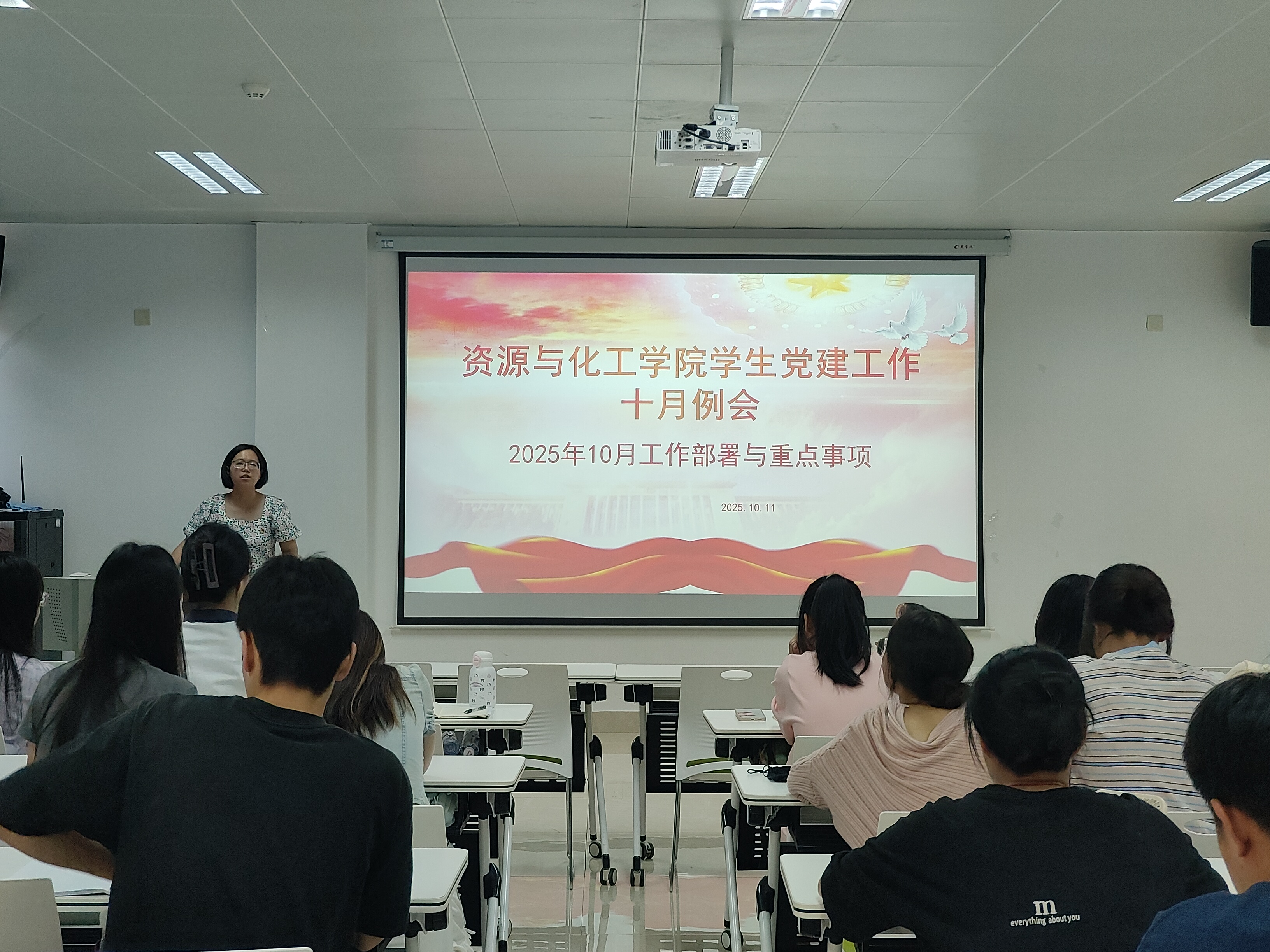 为深入贯彻落实新时代党的建设总要求,统筹推进学生党支部建设,资源与化工学院于10月11日召开十月学生党建重点工作布置会。学院党建小组成员、学生支部委员及支部班级联络员参会,组织员张静老师主持会议并作工作布置。