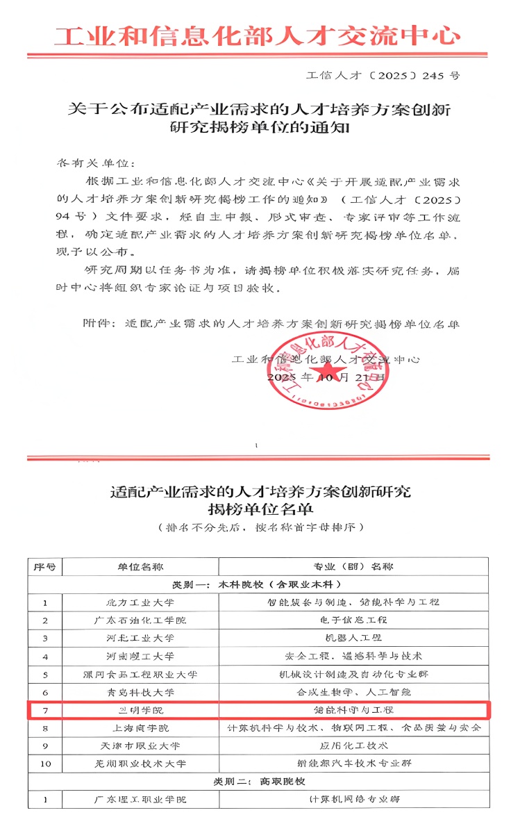 近日,工业和信息化部人才交流中心公布了适配产业需求的人才培养方案创新研究揭榜单位名单,三明学院成功入选。我院主办的储能科学与工程专业位列此次获批的揭榜专业之中。