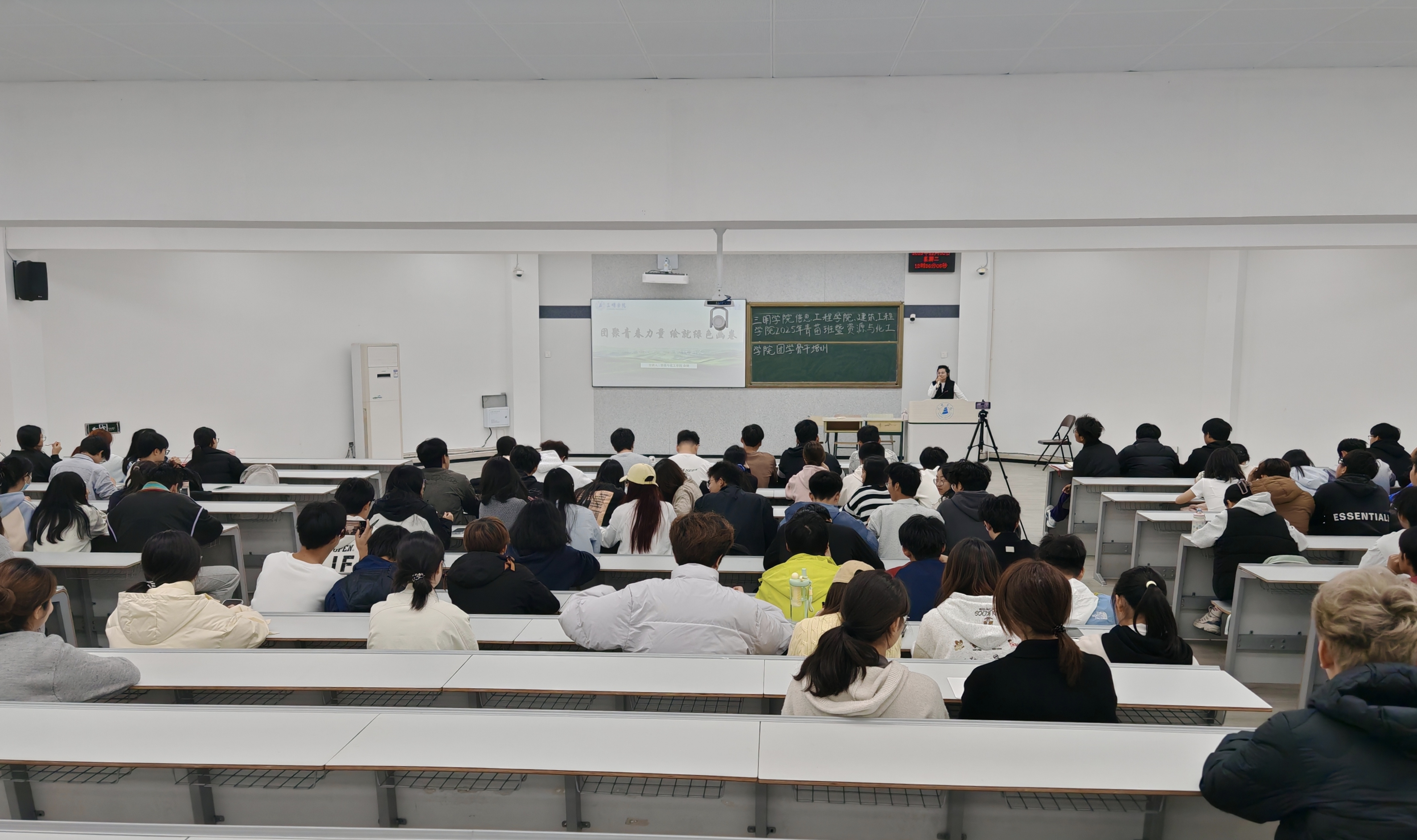 为深入学习贯彻党的二十届四中全会精神,牢固树立和践行绿水青山就是金山银山理念,12月2日,资源与化工学院在博学楼127教室开展“团聚青春力量,绘就绿色画卷”专题授课。学院团学骨干及2024-2025级入团积极分子参与学习。