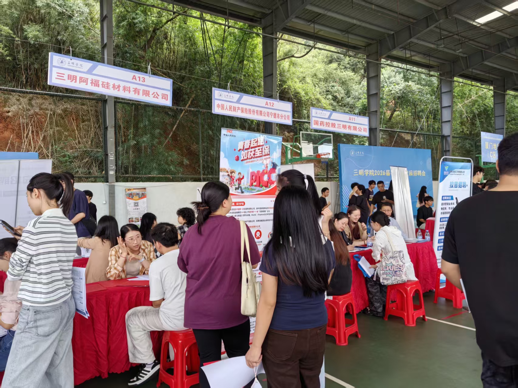 11月8日上午,三明学院2025年校友企业专场招聘会在北区雨盖篮球场如期举行。校领导,三明市人力资源和社会保障局,党政办、宣传部、统战部(校友会)、学生处,各二级学院代表、校友分会、毕业班辅导员及2026届毕业生参加了活动。学院邀请了厦门家乐多食品科技有限公司、福建三明阿福硅材料有限公司、福建蓝海黑石新材料科技有限公司、国药控股三明分公司等10家校友企业到校开展招聘。