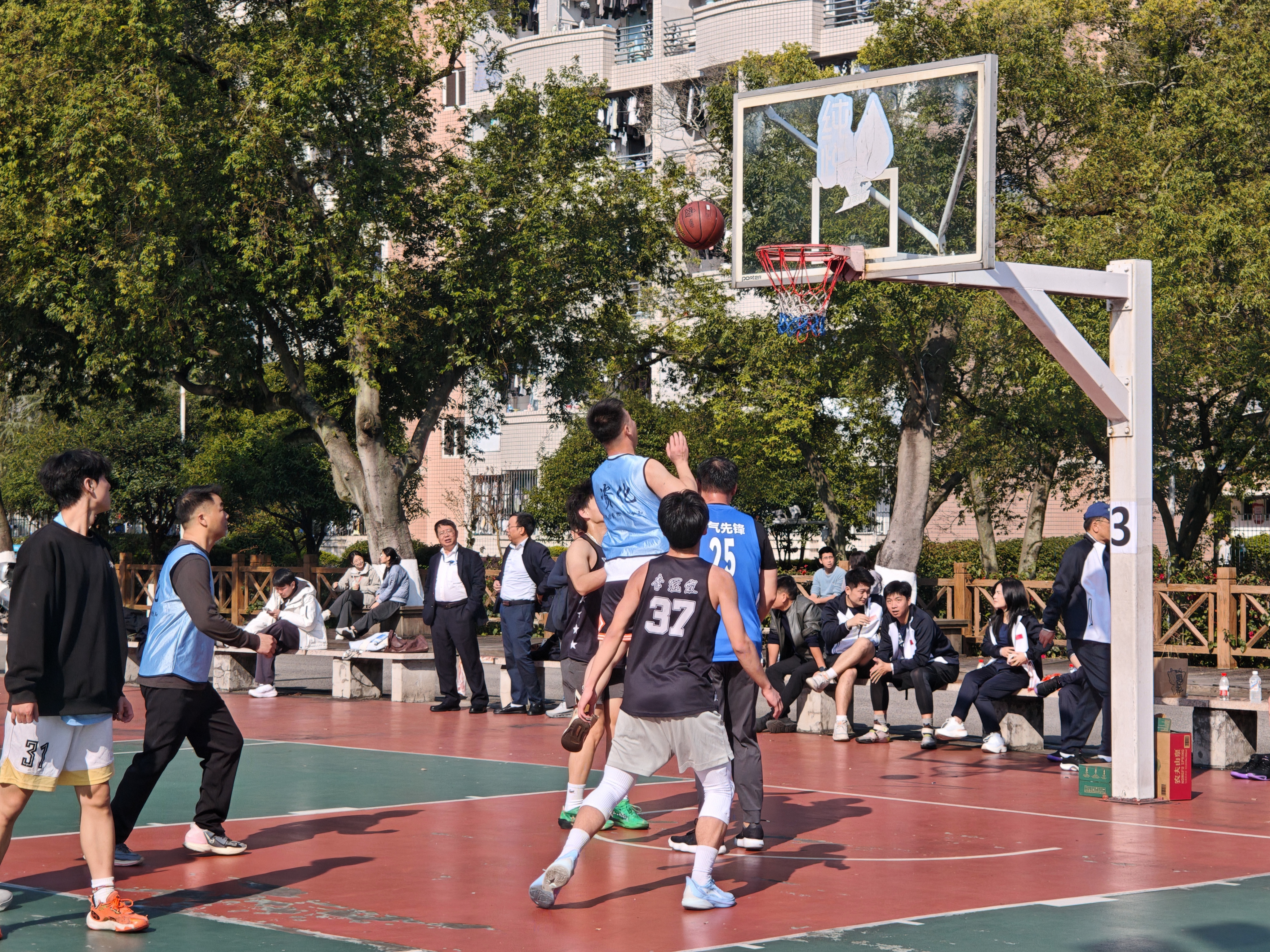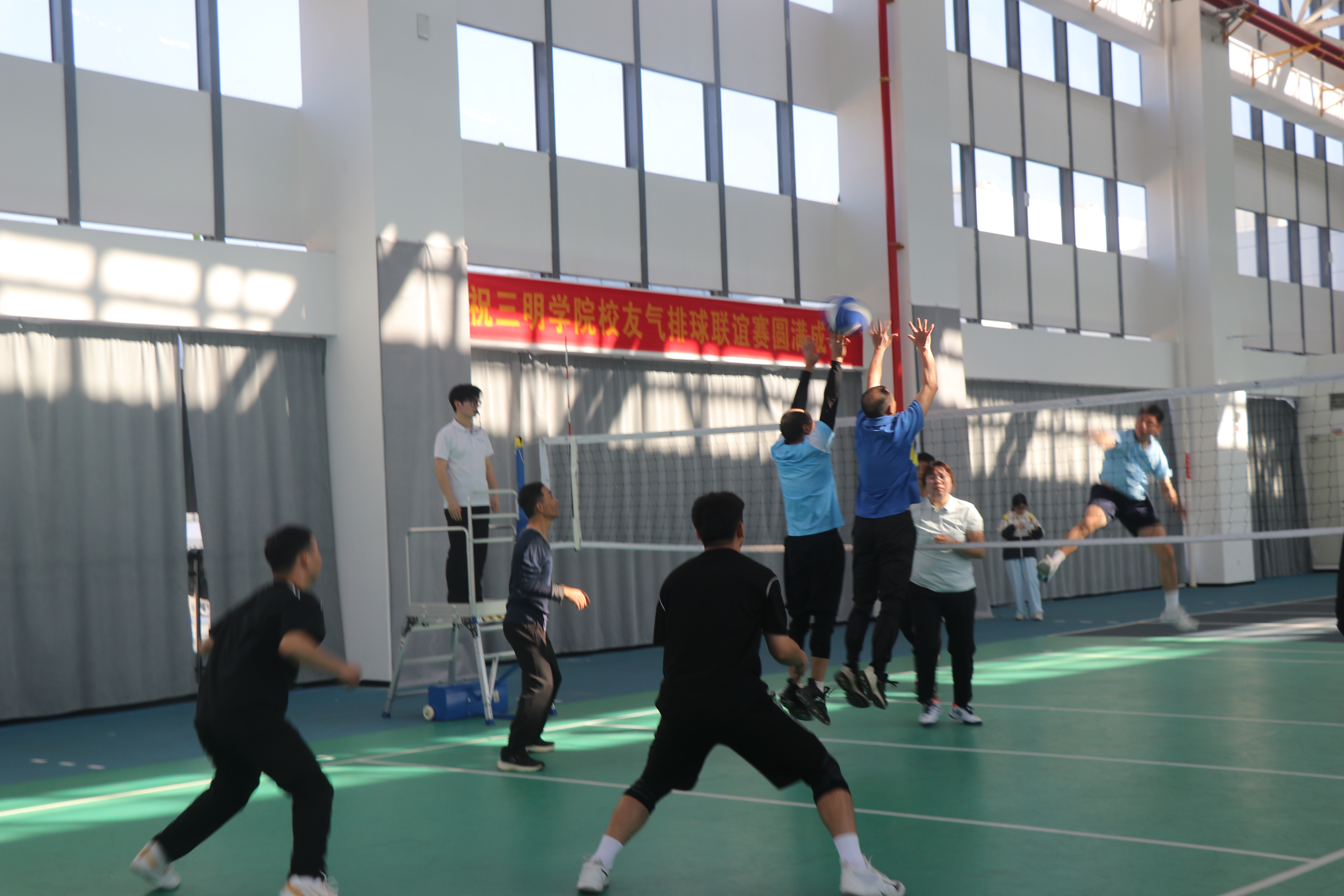 气排球与篮球联谊赛将活动推向高潮。资化学院校友代表队在比赛中展现出卓越的团队协作与拼搏精神,经过激烈角逐,最终斩获气排球比赛一等奖的佳绩。
