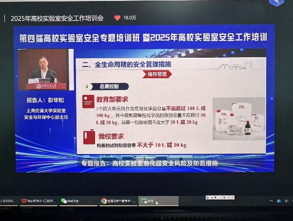 培训过程中,我院教师全神贯注,认真记录。实验室主任强调:“安全是学院一切教学和科研工作的生命线,容不得半点马虎。此次国家级培训是一次宝贵的学习机会,我们要将学到的前沿理念和规范标准,切实转化为保障我院实验室安全运行的实际能力。”