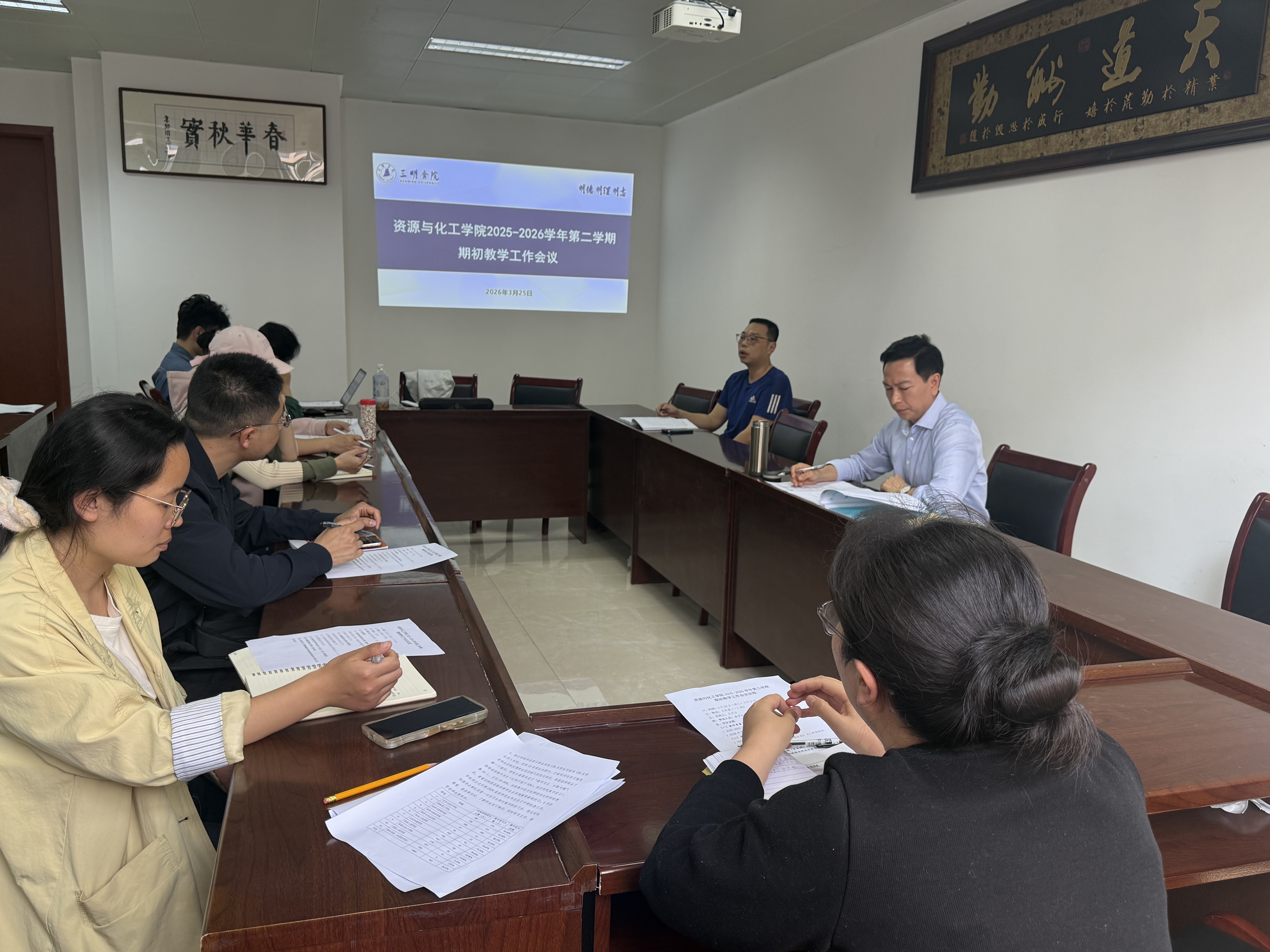 3月25日下午,资源与化工学院在工科楼(一)405会议室召开2025-2026学年第二学期期初教学工作会议。学院教学科研科全体人员、各系主任及专业负责人参加会议,会议由分管教学院务委员石庆会主持