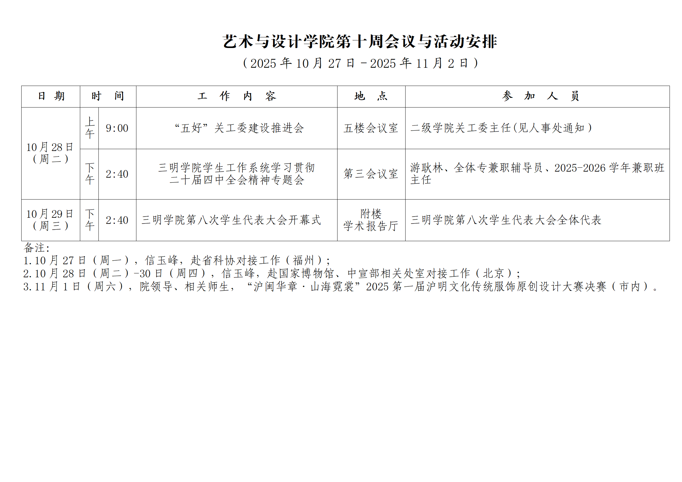 第十周会议与活动安排(2025年10月27日-2025年11月2日)