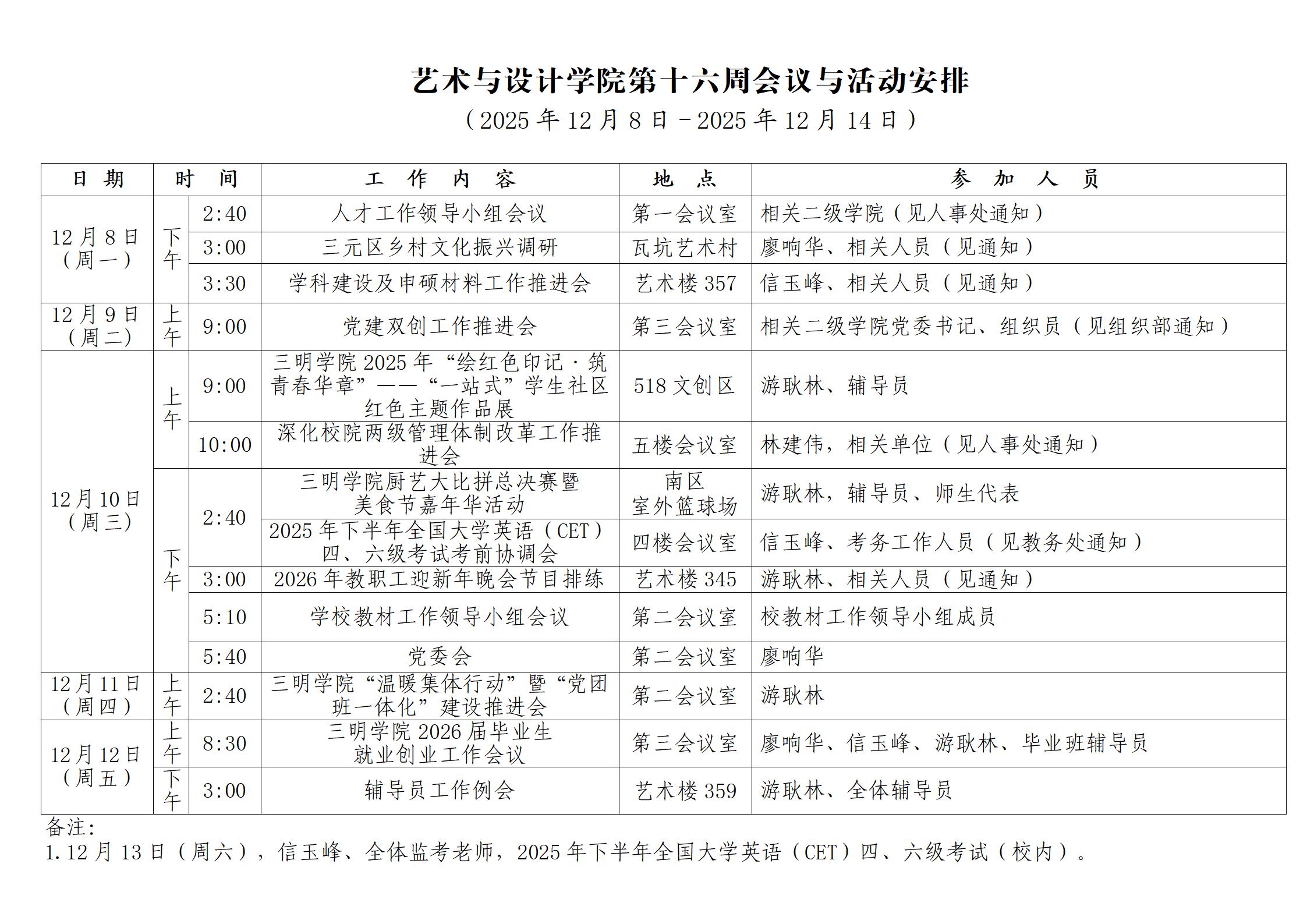 第十六周会议与活动安排(2025年12月8日-2025年12月14日)