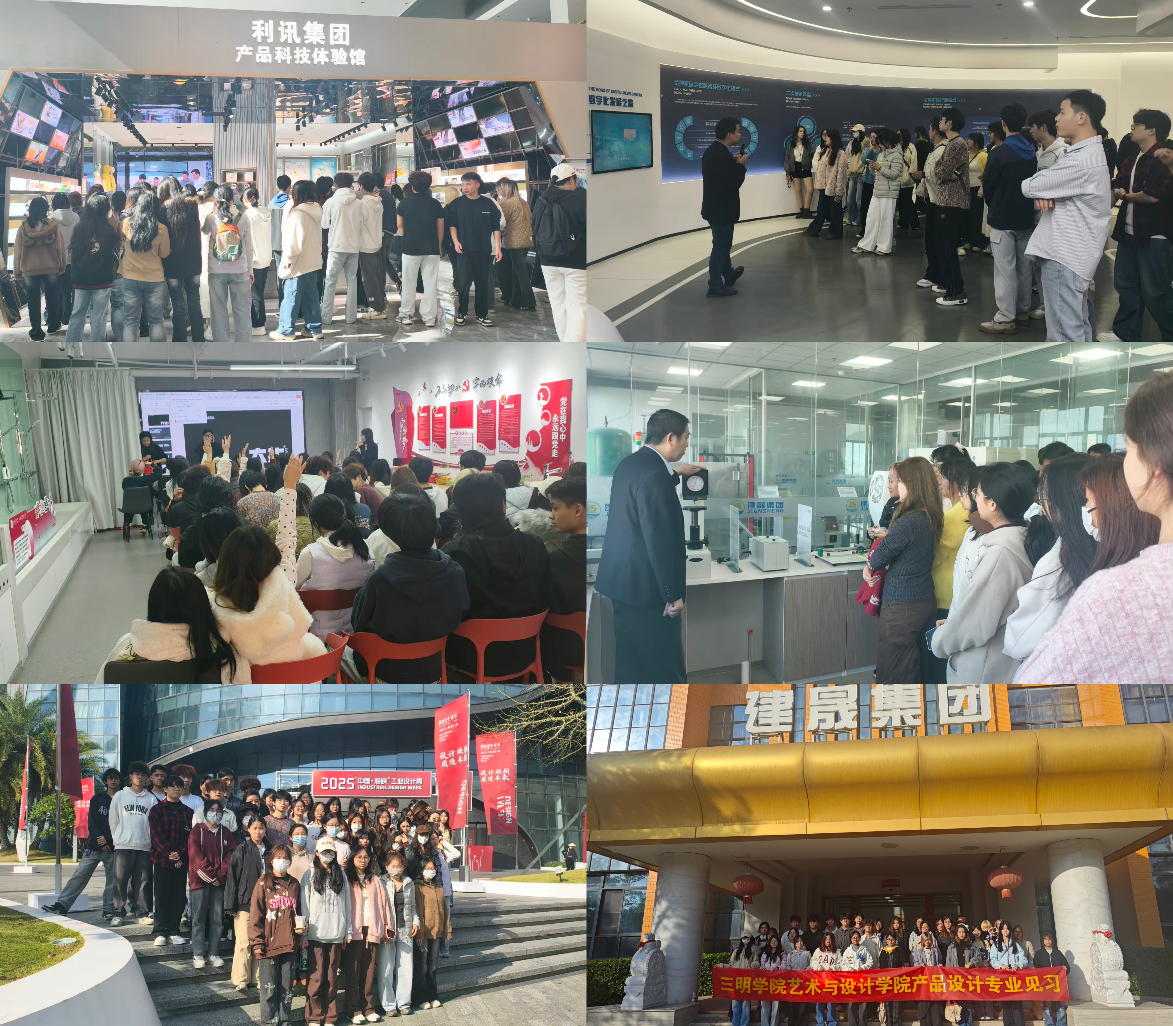 师生一行先后前往漳州建晟家具集团、厦门百路达工业有限公司、厦门大白科技有限公司、金牌家居厦门总部、泉州比邻三维科技有限公司、福建利讯集团有限公司等企业,深入设计中心、研发实验室、生产车间与产品展厅。企业设计师结合实战案例,系统讲解了产品从市场调研、概念构思、草图绘制、三维建模到原型制作与批量生产的完整流程,并围绕智能家居、环保设计等方向,重点分析了用户导向、技术可行性与美学融合等关键问题。学生们近距离观摩了专业软件操作与先进设计工具的应用,对产品设计的产业化过程有了更具体的认识。
