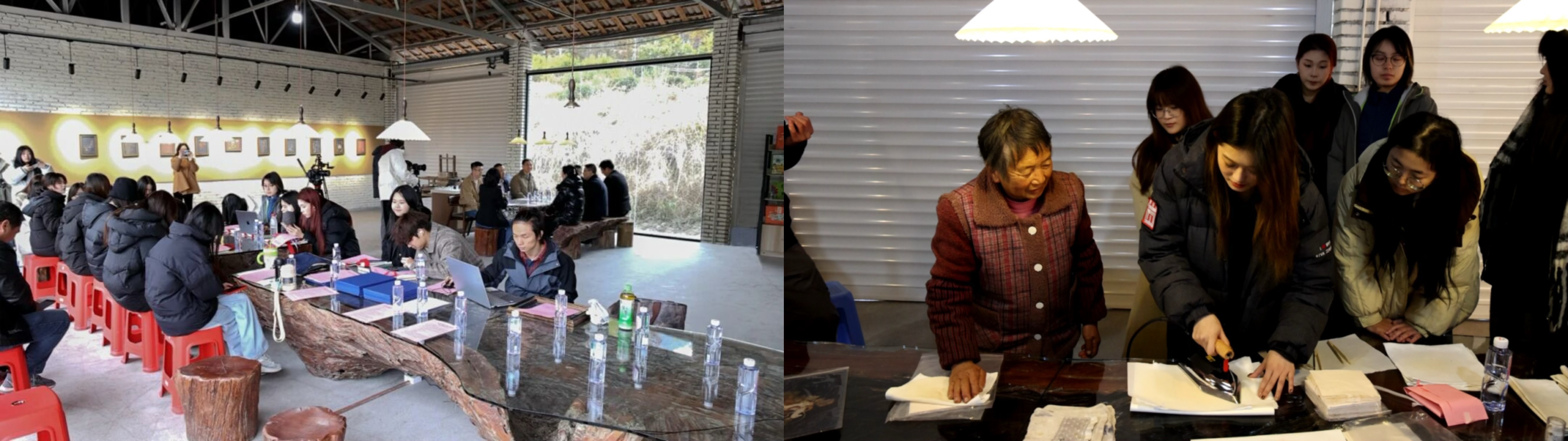 在明溪县海峡两岸观鸟文创中心(紫云),师生们深入了解了“秀美夏阳”区域公共品牌的理念与实践。两岸师生围绕观鸟产业升级、非遗保护创新等议题展开沙龙交流,来自台湾新竹野鸟会的理事也通过线上连线分享了观鸟研学的见解,为生态文化交流增添了多元视角。同学们还亲身体验了非遗金箔彩画的制作过程,从亲手熨烫金箔纸的实践中感受传统技艺的独特魅力。