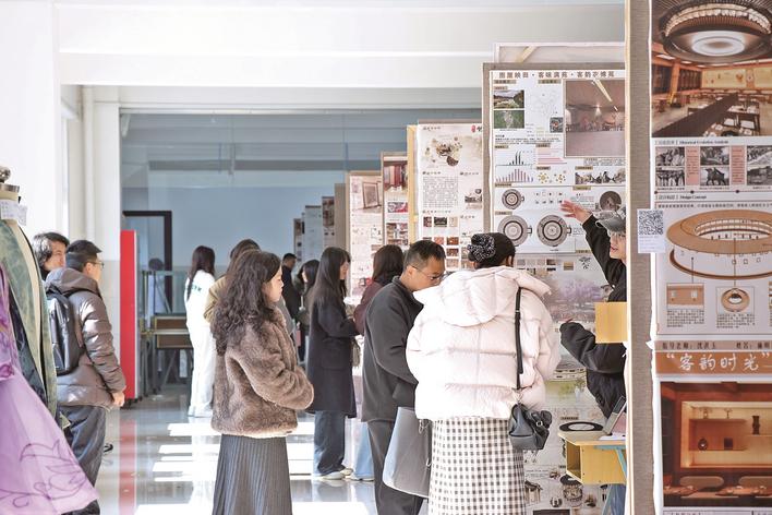 1月15日,三明学院艺术与设计学院、海峡理工学院联合举办2026届毕业设计作品展。展览以“三明,你好”为主题,集中呈现了服装与服饰设计、产品设计、视觉传达设计、环境设计四个专业的360余件优秀毕业作品。